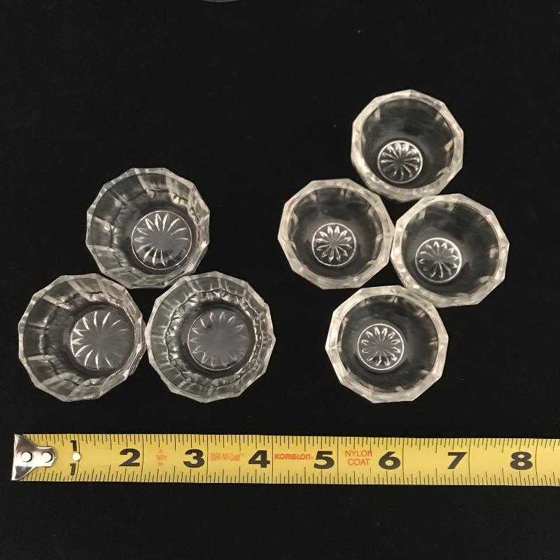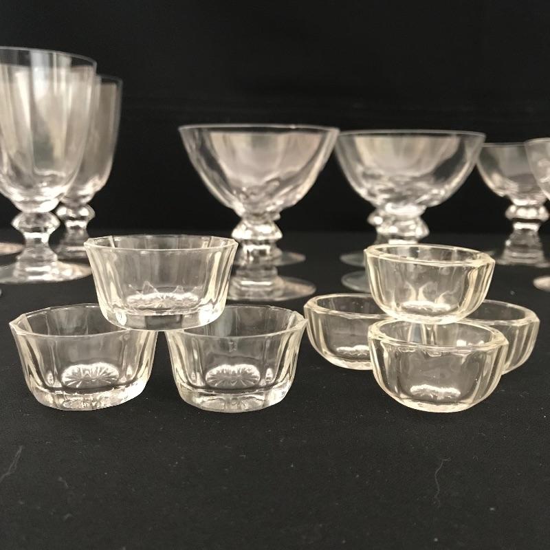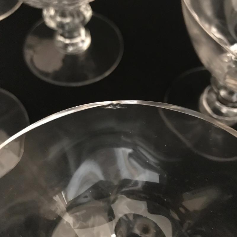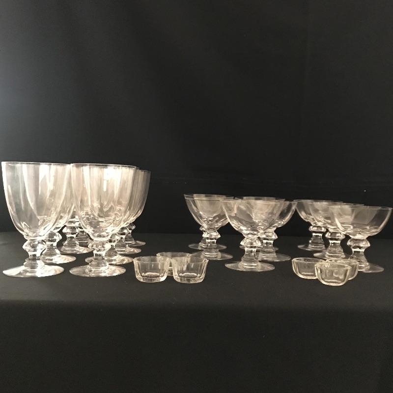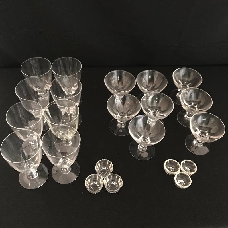 Add simple elegance to your next event with these eight crystal-like stemmed water glasses and eight low champagne glasses. Really take your next dinner to event status with these seven demitasse ramekins. Some chips were found on stemware, see images.