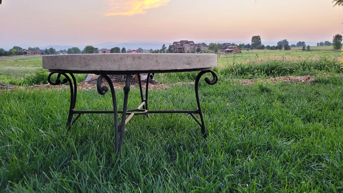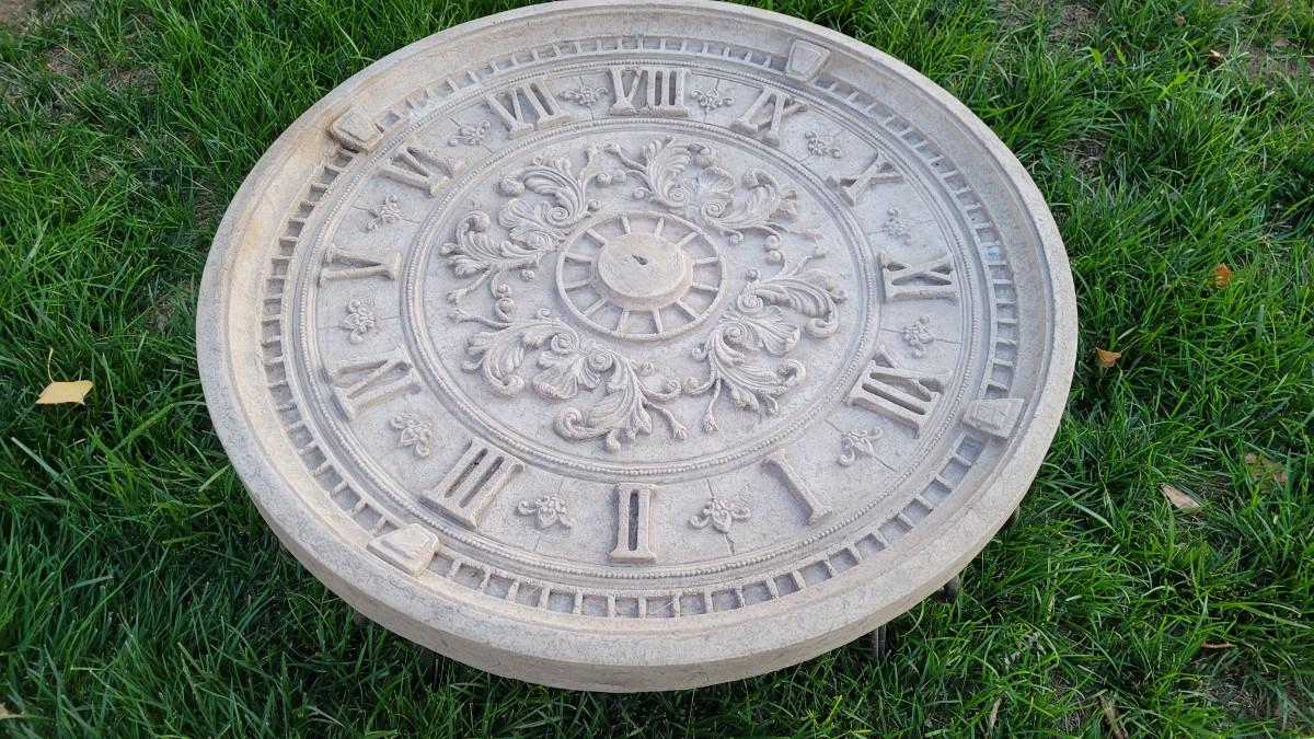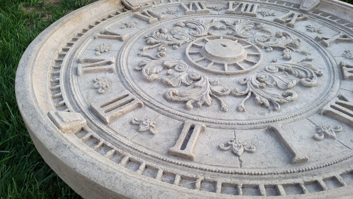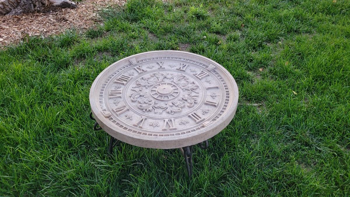 Lot 255: Vintage Sun Dial Themed Patio Coffee Table (Plaster Composite) w/ Glass Top