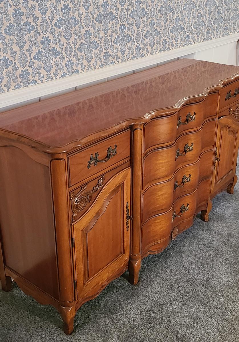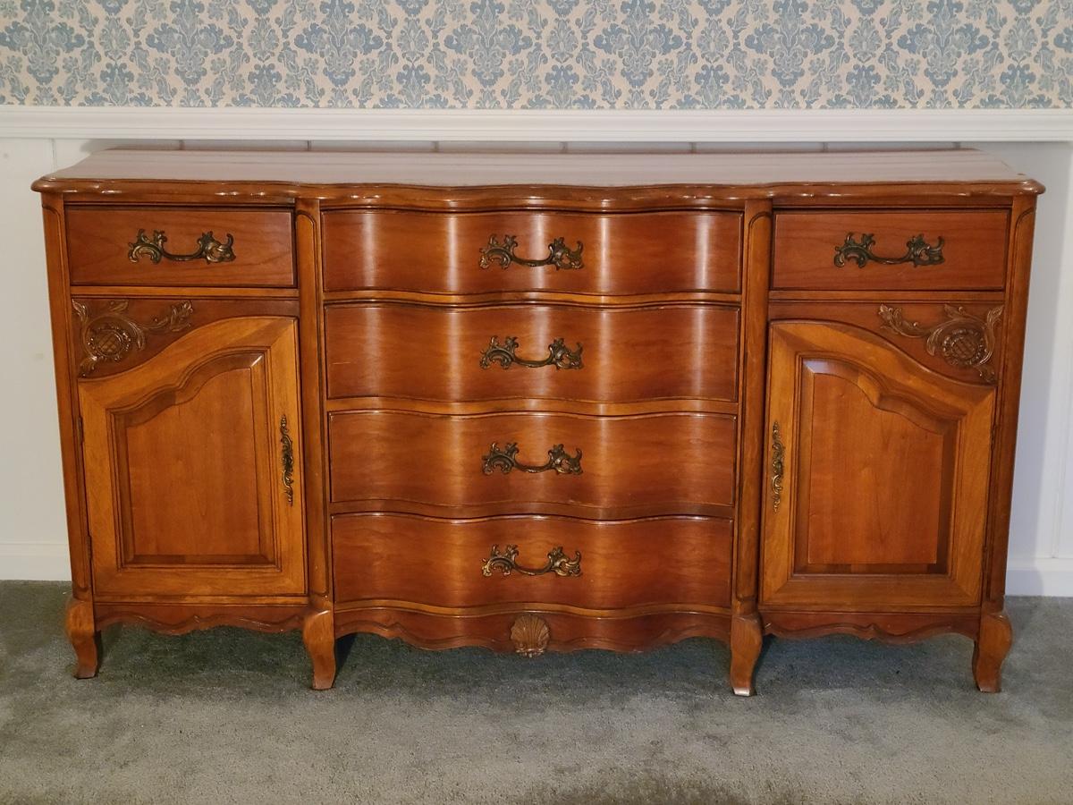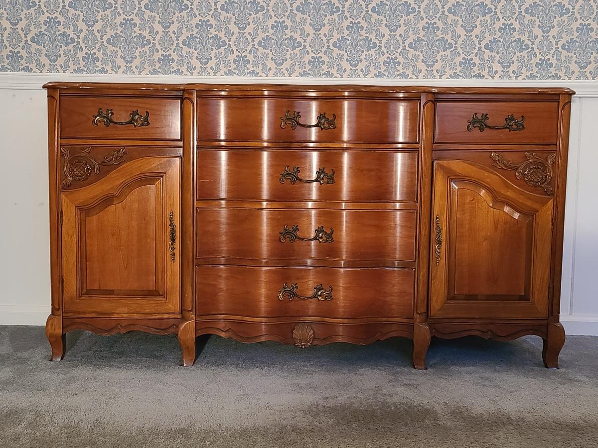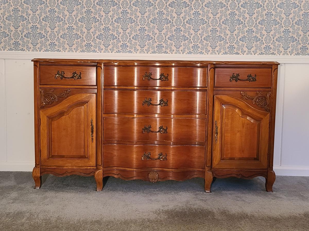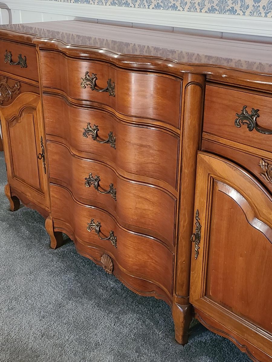 60x19x33 inches tall. This piece is gorgeous and still looks amazing even though it is vintage. This is solid and clean! Perfect accent in any home as is, or would look great up-cycled and painted. Please see all pictures as they are the best representation of the items. The pictures show condition, measurements if taken, and what is included in the lot. Due to the large amount that we photograph and the time frame, we are not always able to take measurements. All items unless noted, are pre-owned and have been used. If you purchased furniture, you must bring help. We do not allow one person to carry large furniture out on their own. Bring help, tools and a truck for the safety of our client’s homes, and your personal safety. Company policy. Thank you.