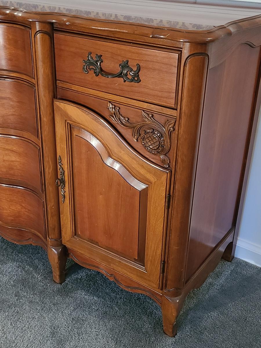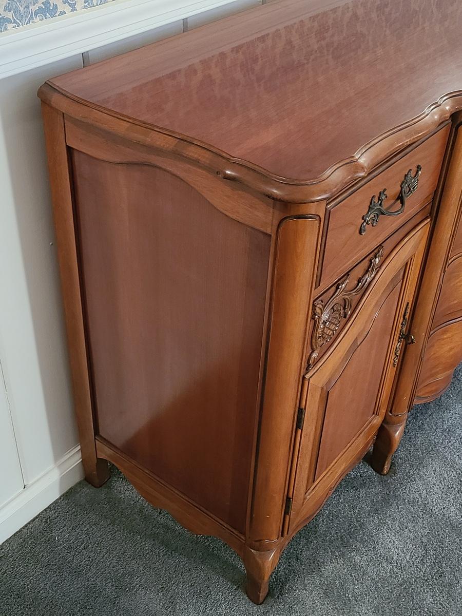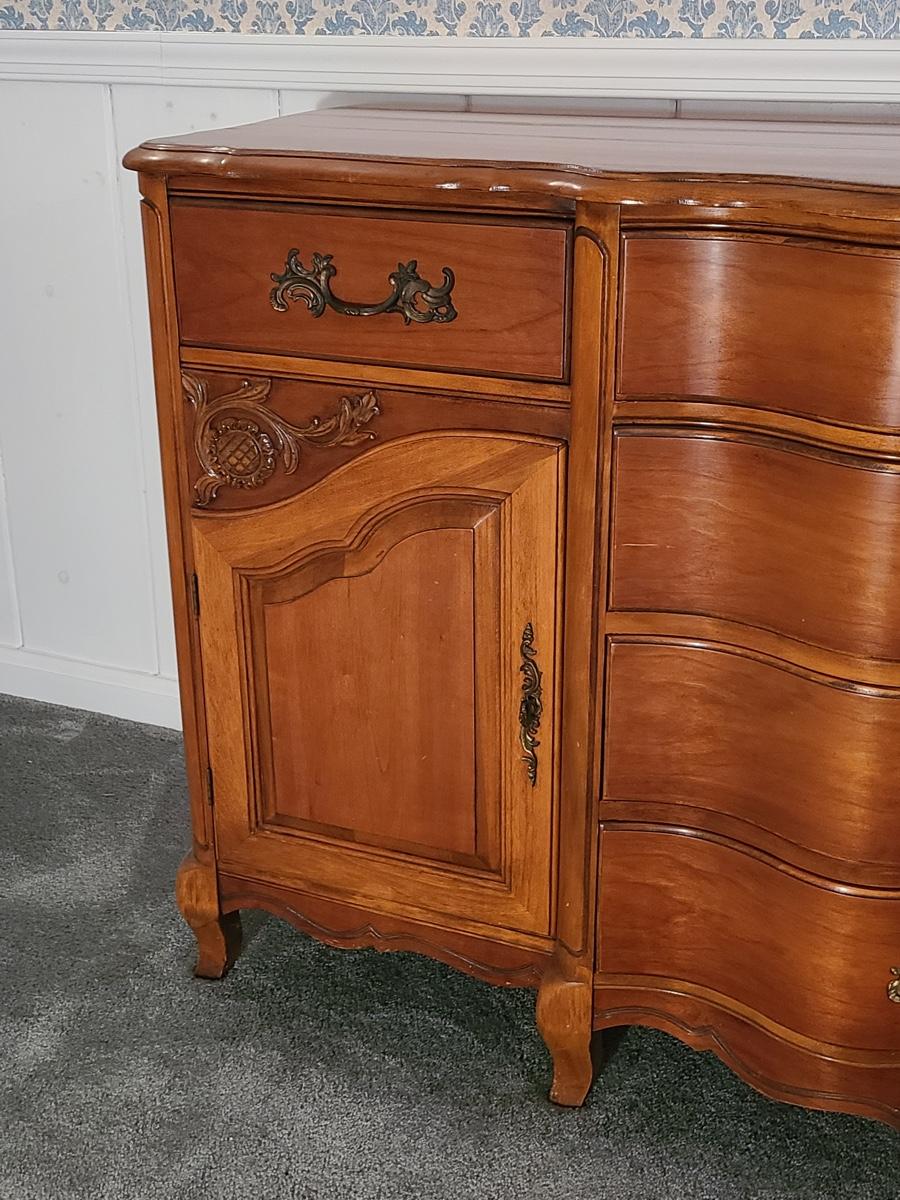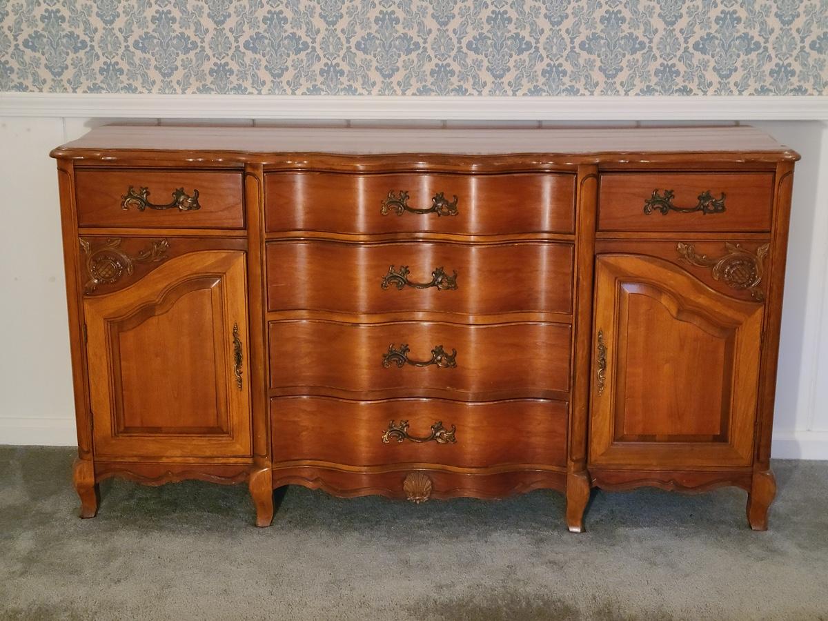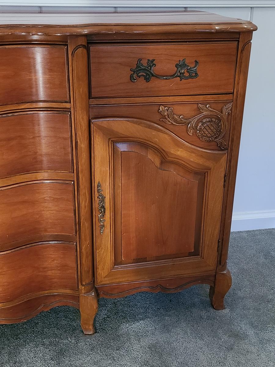 60x19x33 inches tall. This piece is gorgeous and still looks amazing even though it is vintage. This is solid and clean! Perfect accent in any home as is, or would look great up-cycled and painted. Please see all pictures as they are the best representation of the items. The pictures show condition, measurements if taken, and what is included in the lot. Due to the large amount that we photograph and the time frame, we are not always able to take measurements. All items unless noted, are pre-owned and have been used. If you purchased furniture, you must bring help. We do not allow one person to carry large furniture out on their own. Bring help, tools and a truck for the safety of our client’s homes, and your personal safety. Company policy. Thank you.