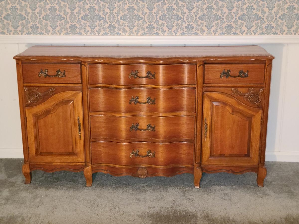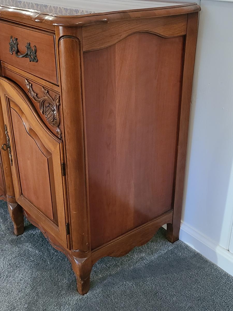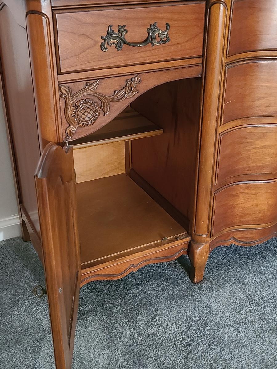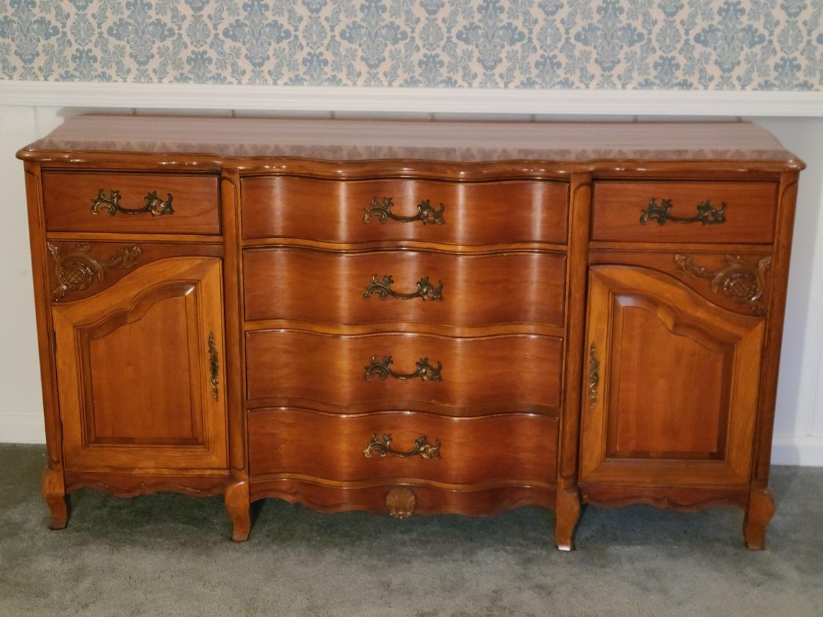60x19x33 inches tall. This piece is gorgeous and still looks amazing even though it is vintage. This is solid and clean! Perfect accent in any home as is, or would look great up-cycled and painted. Please see all pictures as they are the best representation of the items. The pictures show condition, measurements if taken, and what is included in the lot. Due to the large amount that we photograph and the time frame, we are not always able to take measurements. All items unless noted, are pre-owned and have been used. If you purchased furniture, you must bring help. We do not allow one person to carry large furniture out on their own. Bring help, tools and a truck for the safety of our client’s homes, and your personal safety. Company policy. Thank you.