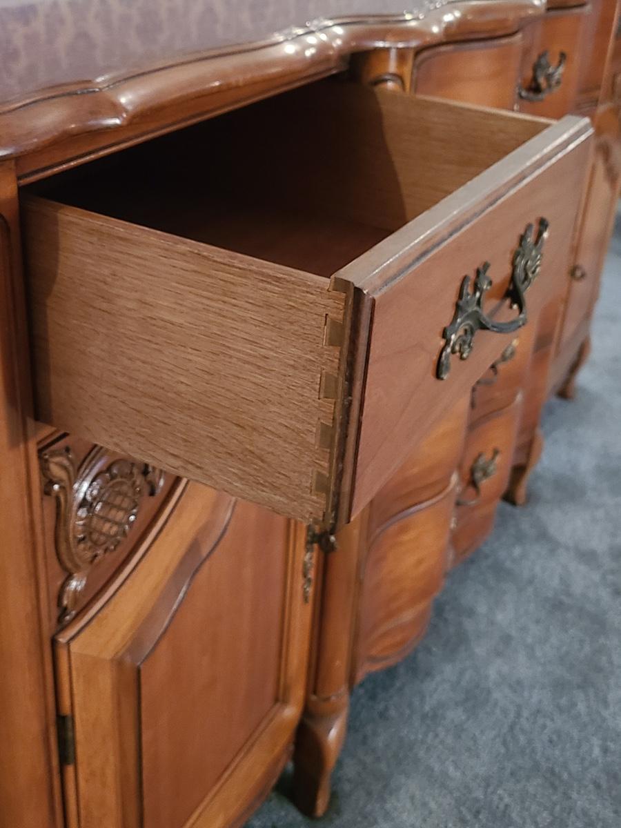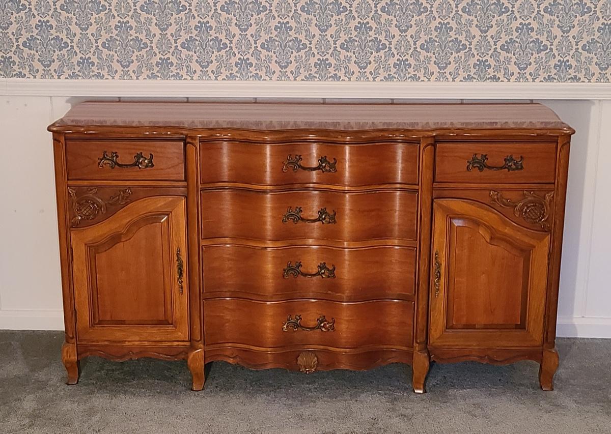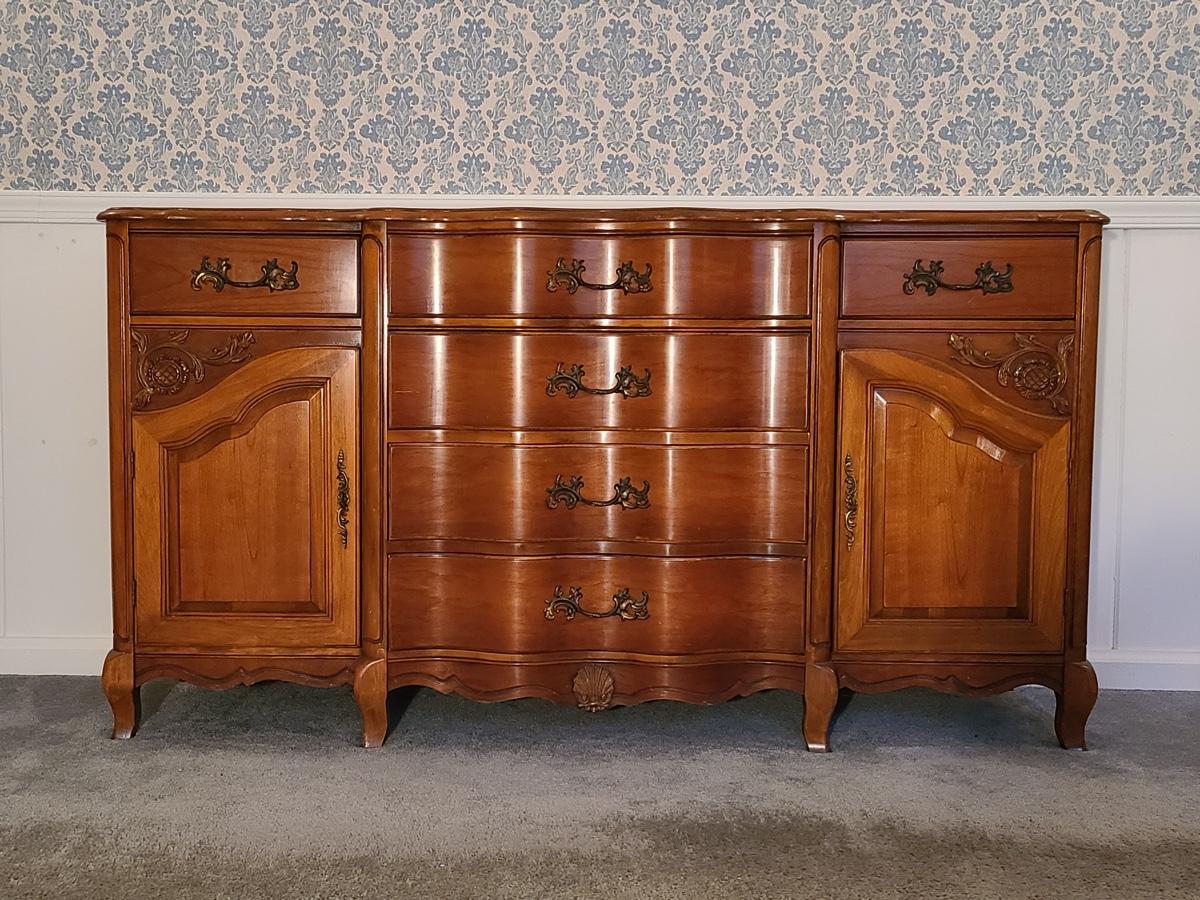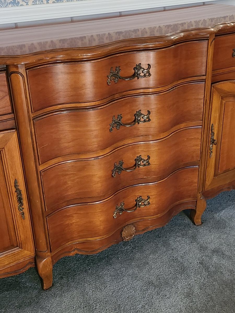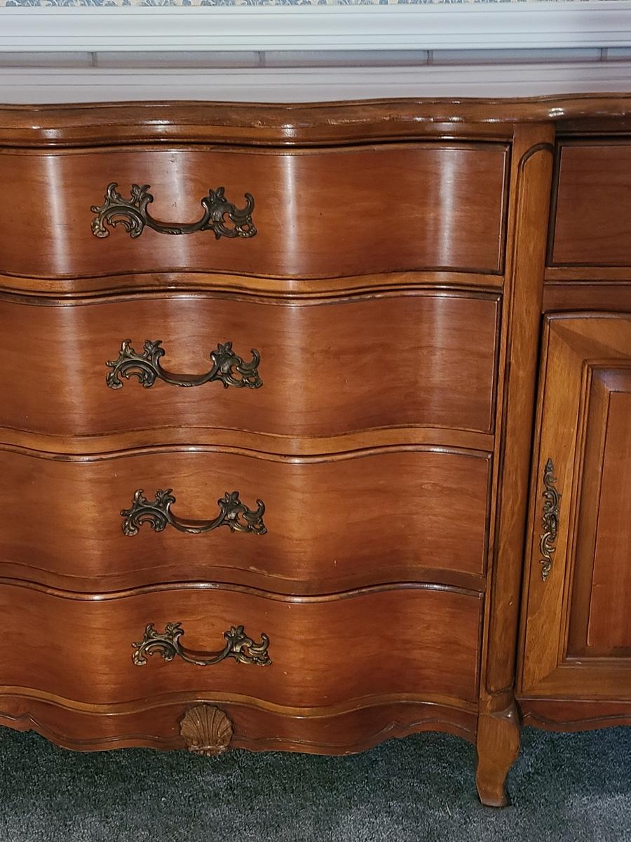 60x19x33 inches tall. This piece is gorgeous and still looks amazing even though it is vintage. This is solid and clean! Perfect accent in any home as is, or would look great up-cycled and painted. Please see all pictures as they are the best representation of the items. The pictures show condition, measurements if taken, and what is included in the lot. Due to the large amount that we photograph and the time frame, we are not always able to take measurements. All items unless noted, are pre-owned and have been used. If you purchased furniture, you must bring help. We do not allow one person to carry large furniture out on their own. Bring help, tools and a truck for the safety of our client’s homes, and your personal safety. Company policy. Thank you.