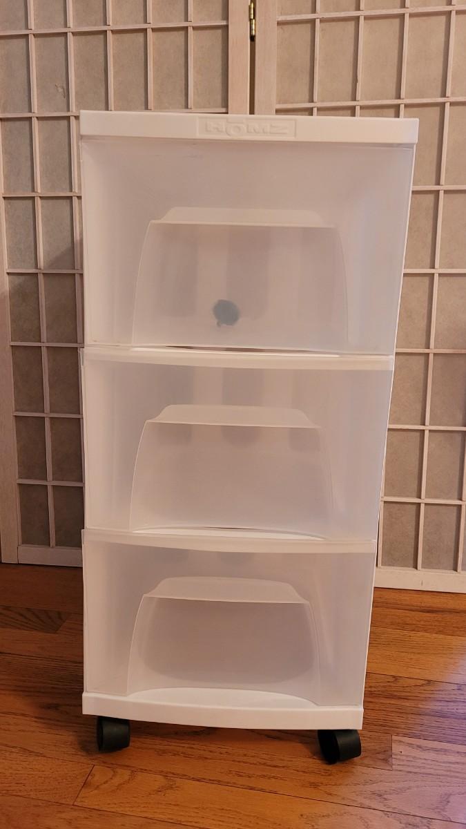 Lot 255: Homz Rolling Plastic 3 Drawer Storage