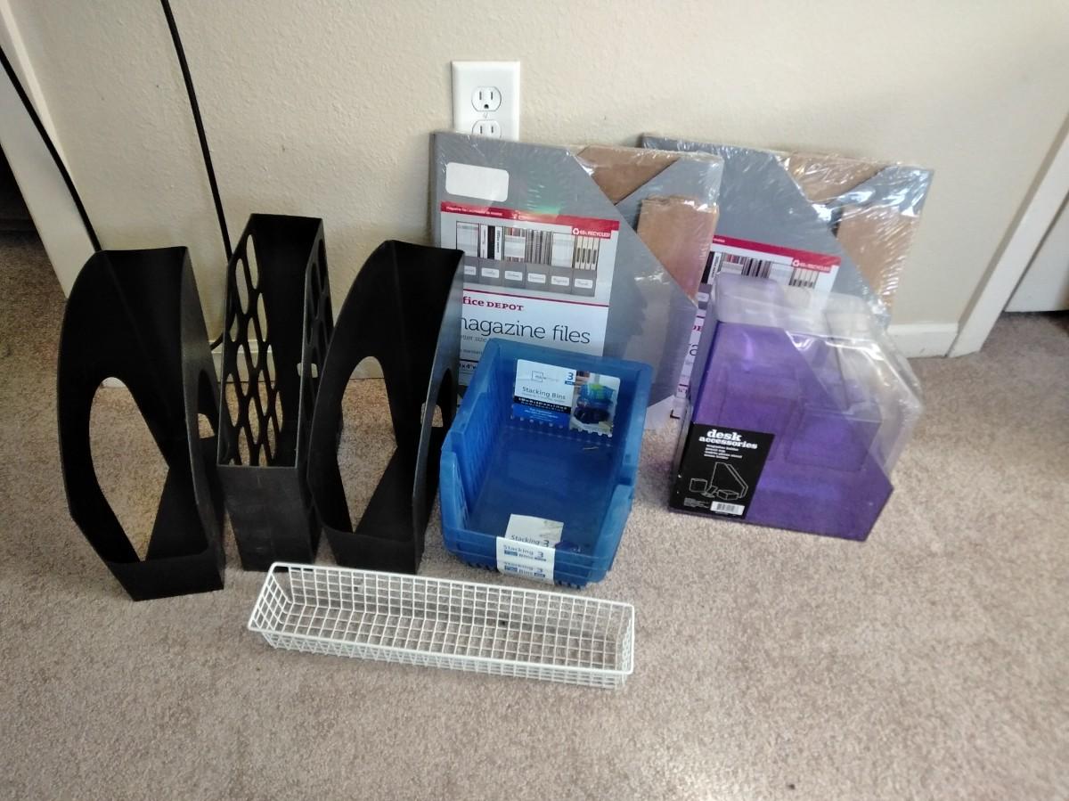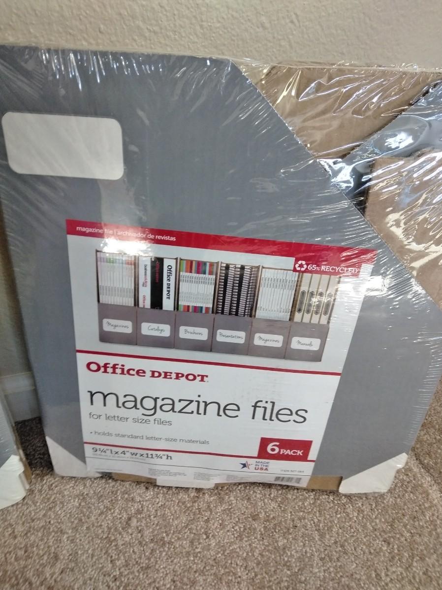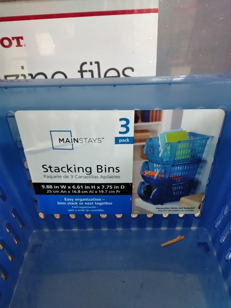 ORGANIZING BINS FOR MAGAZINES, AND OFFICE DEPOT MAGAZINE FILES, MAINSTAYS STACKING BINS 3 PACK