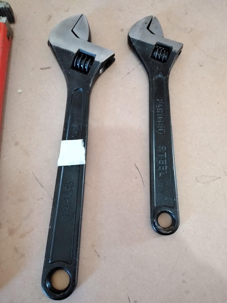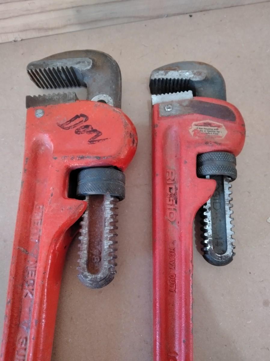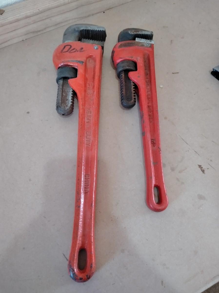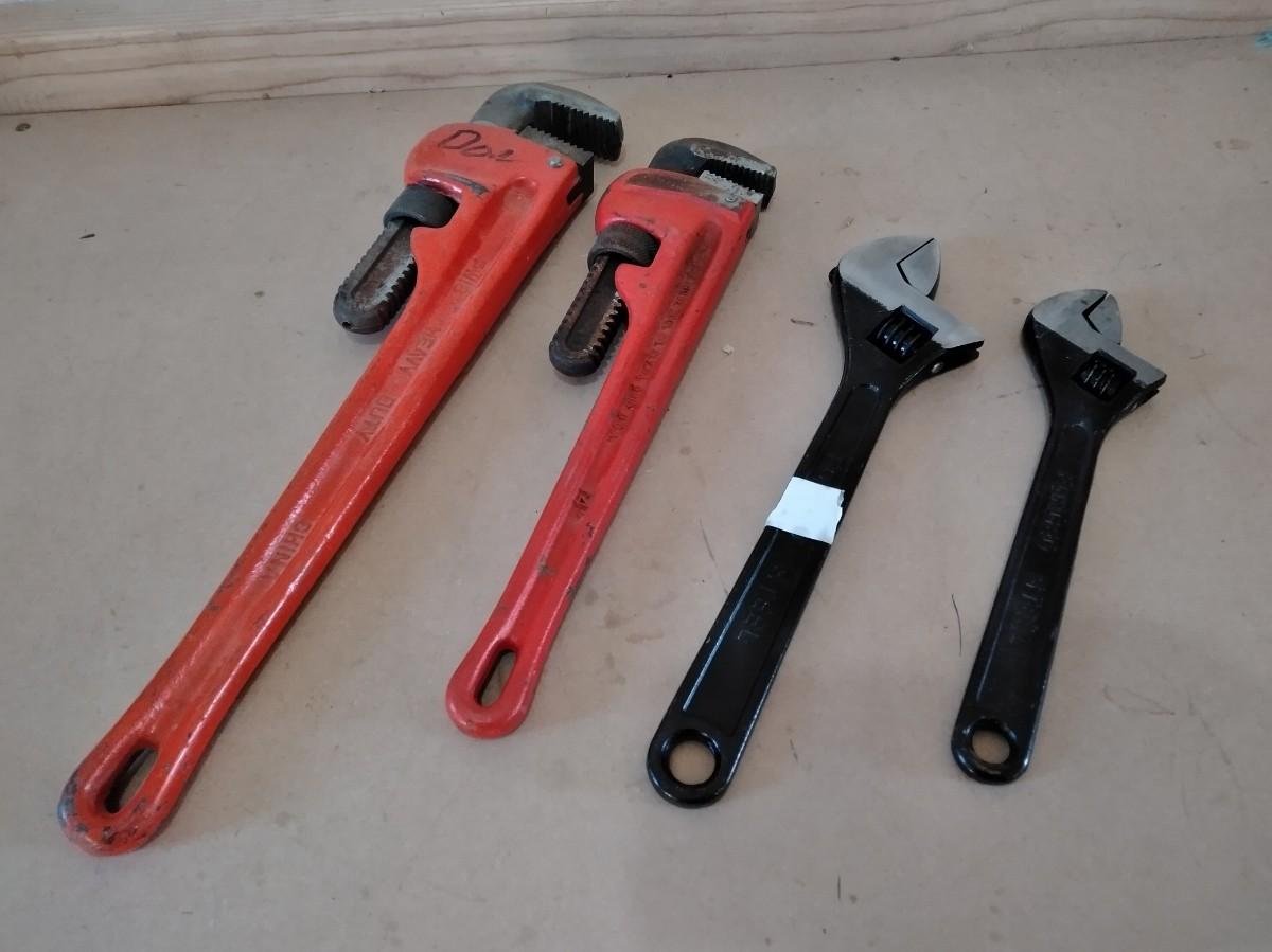 TWO PIPE WRENCHES AND TWO ADJUSTABLE WRENCHES
