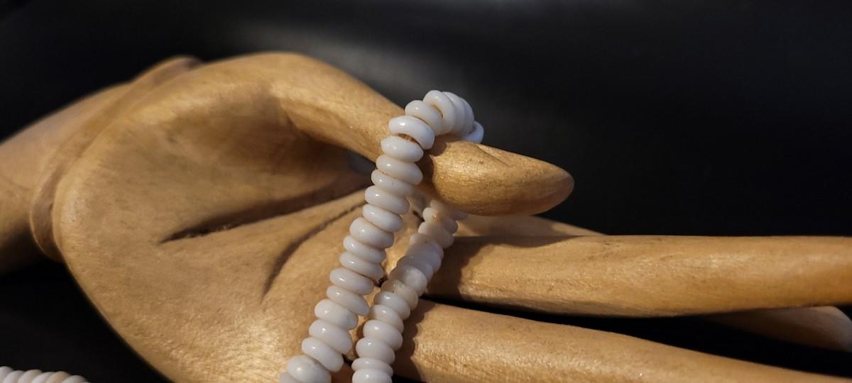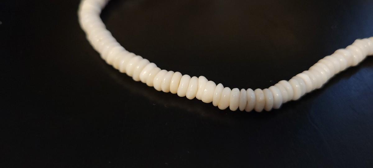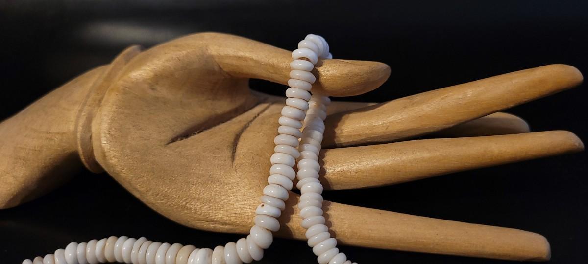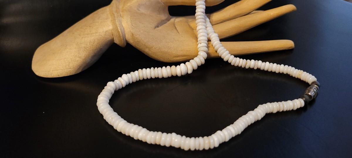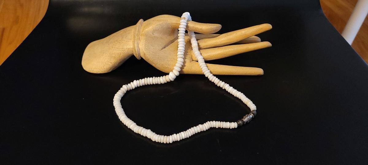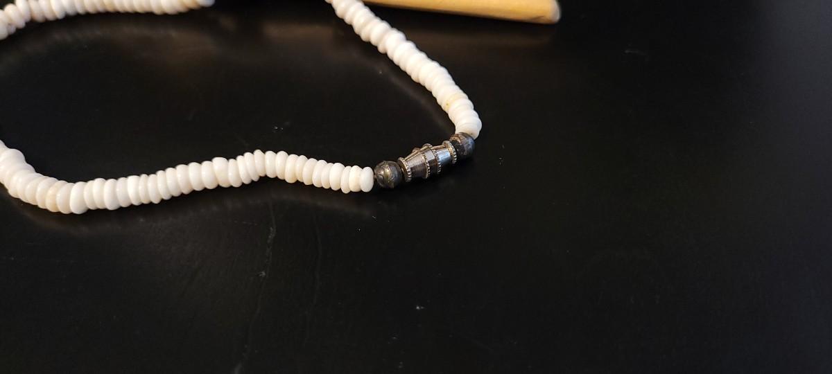 Lot 255: Vintage Native American White Shell Bead Necklace Metal Clasp