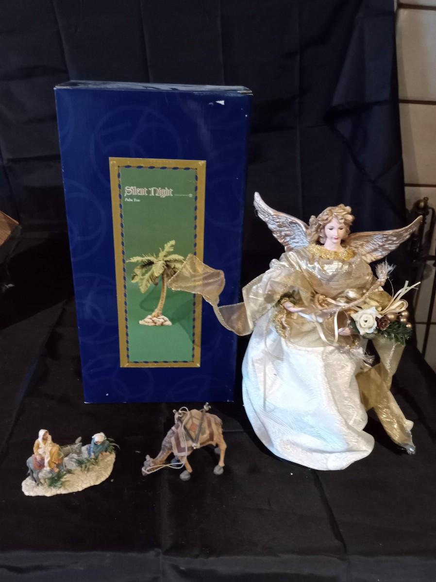 LOT 255  DEPT 56 VILLAGE ACCESSORIES, ANGEL TREE TOPPER AND PALM TREE