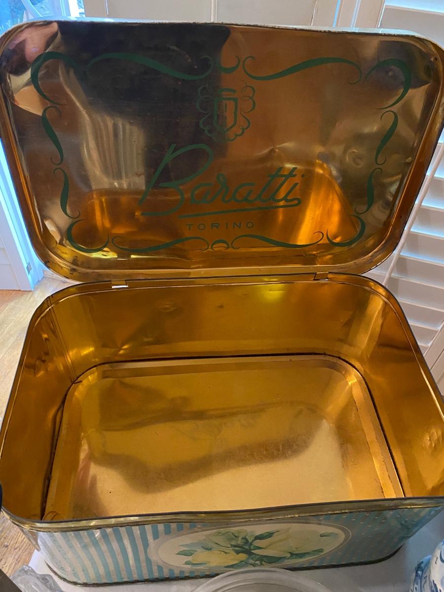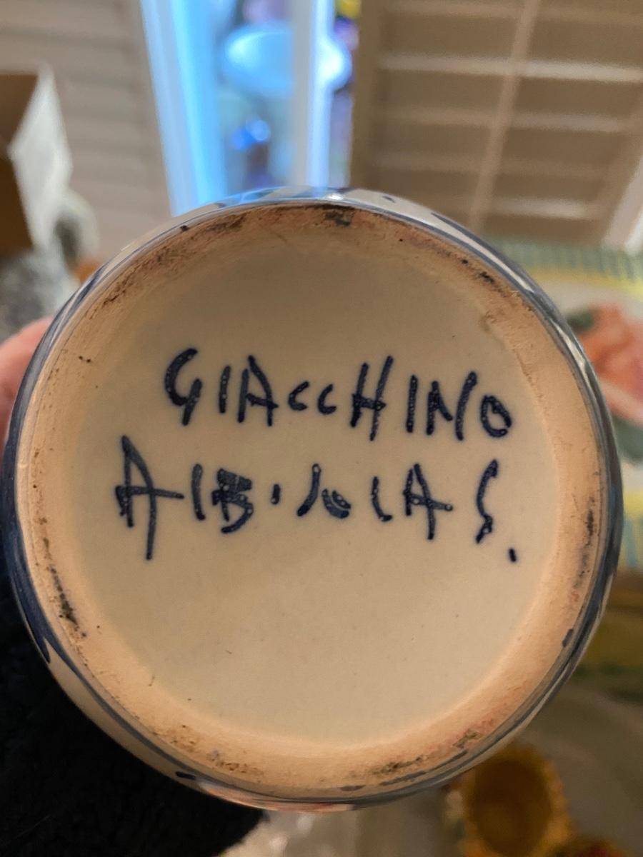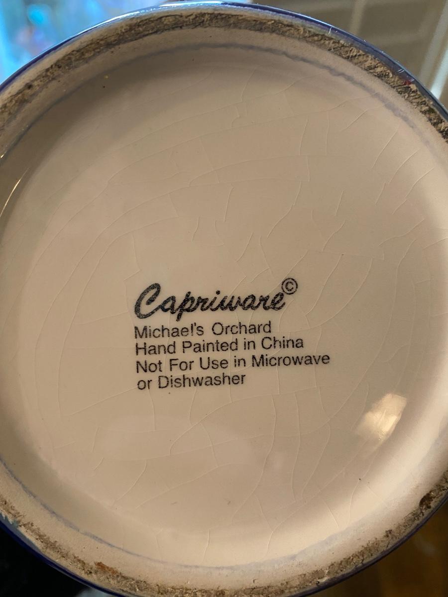 Blue and white Mia Cara with lid (5”h has a chip in lid