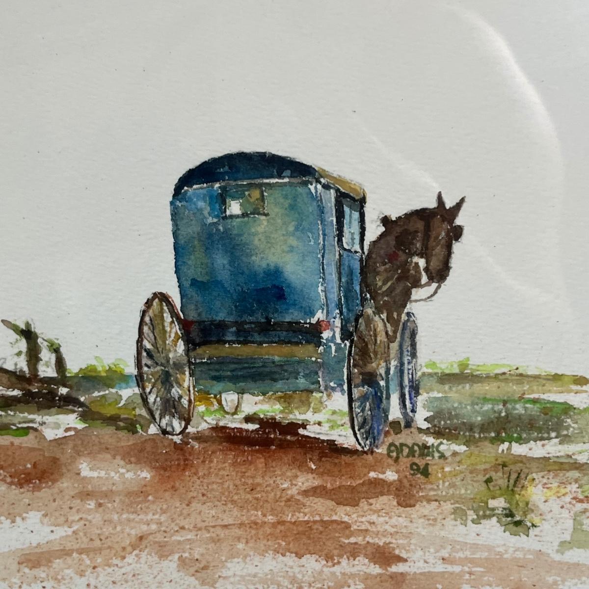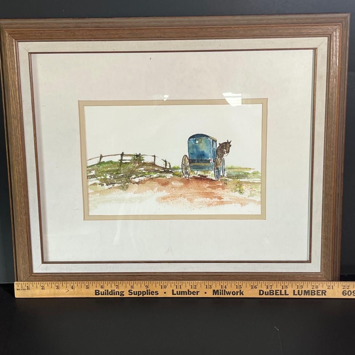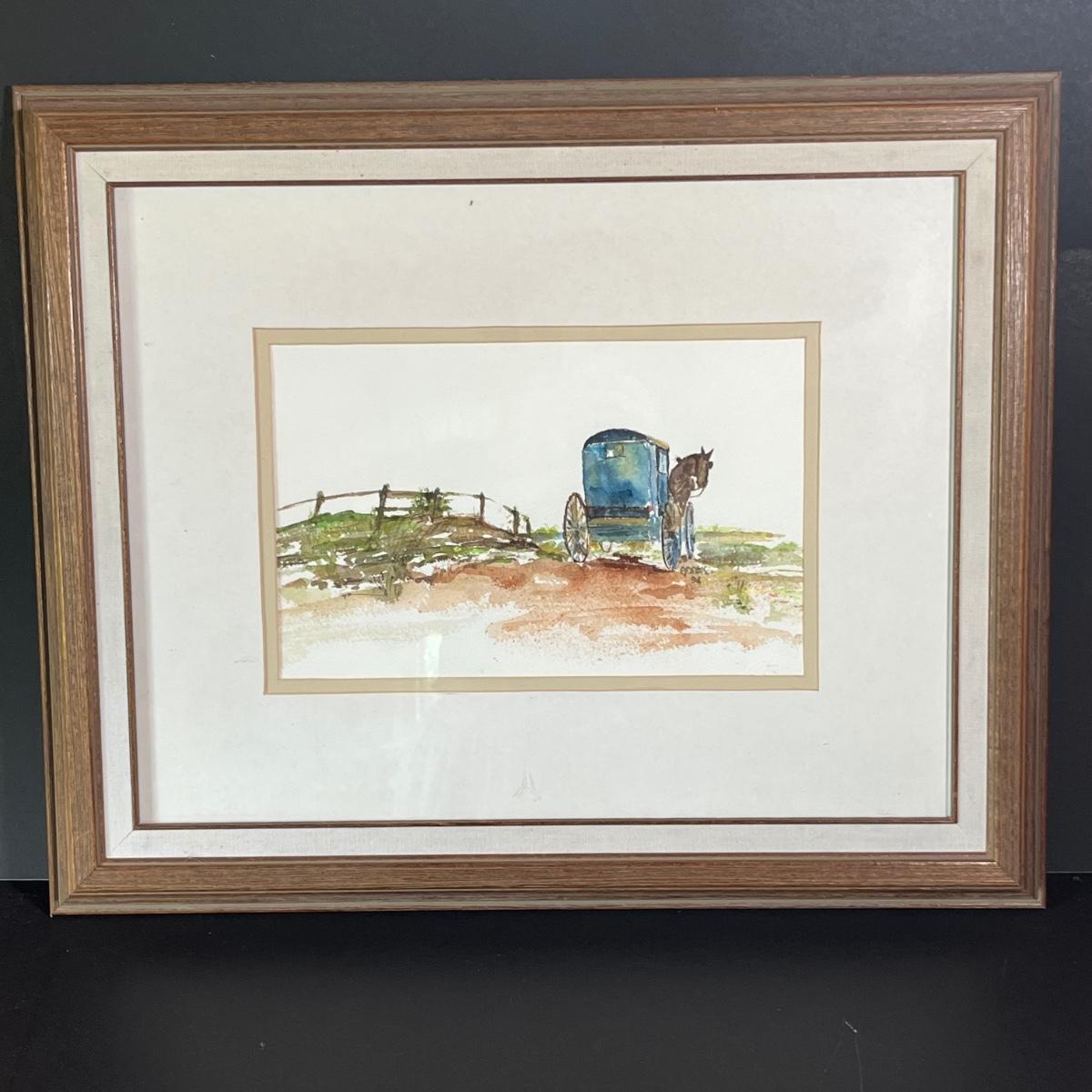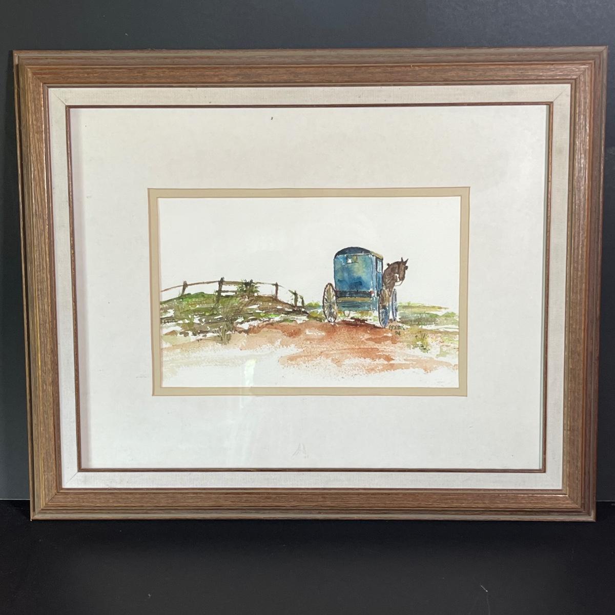 LOT 255: Albert S. Adams Signed Watercolor Painting of Wagon