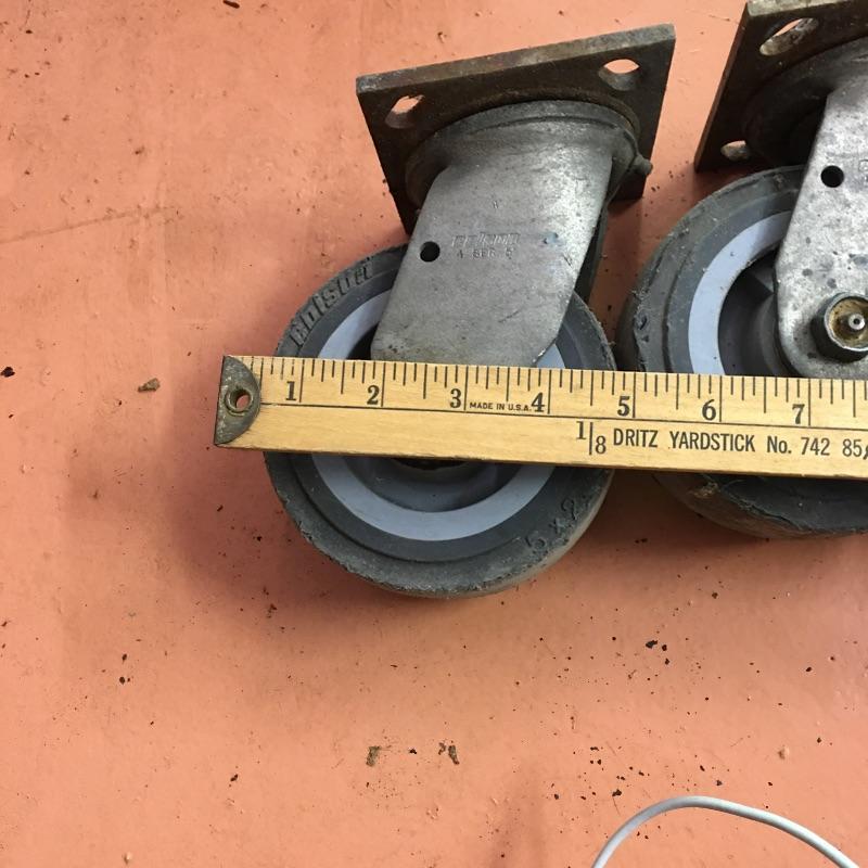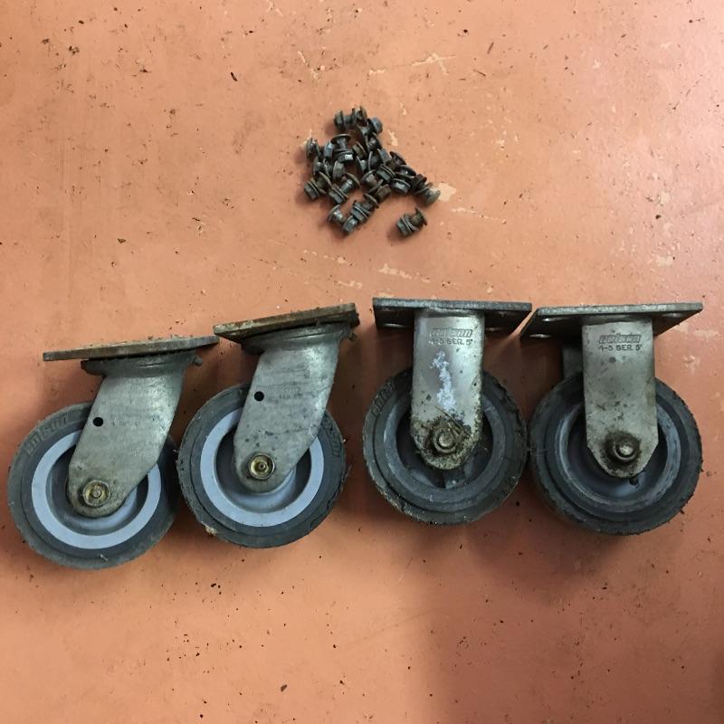 Colson 5” caster wheels has two that are solid and two that swivel. Also comes with sixteen nuts and bolts. A great way to make your own work bench mobile.