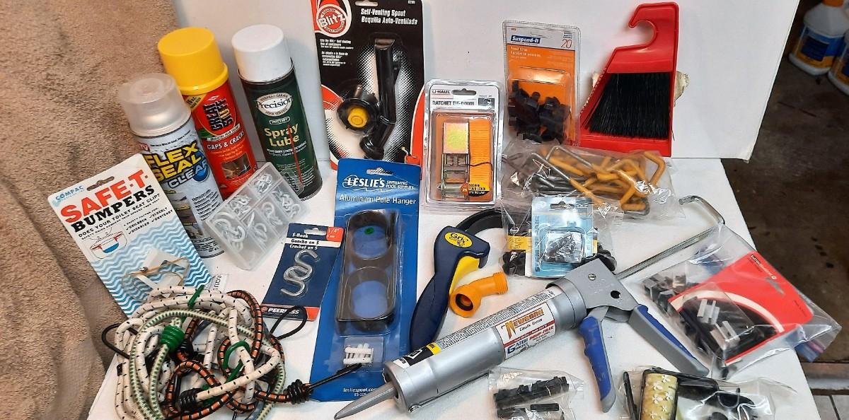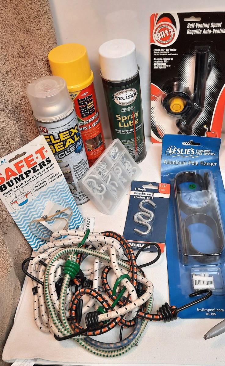 Small Wisk Broom, Cup Hooks, Grip Wrench, Window Locks & more.