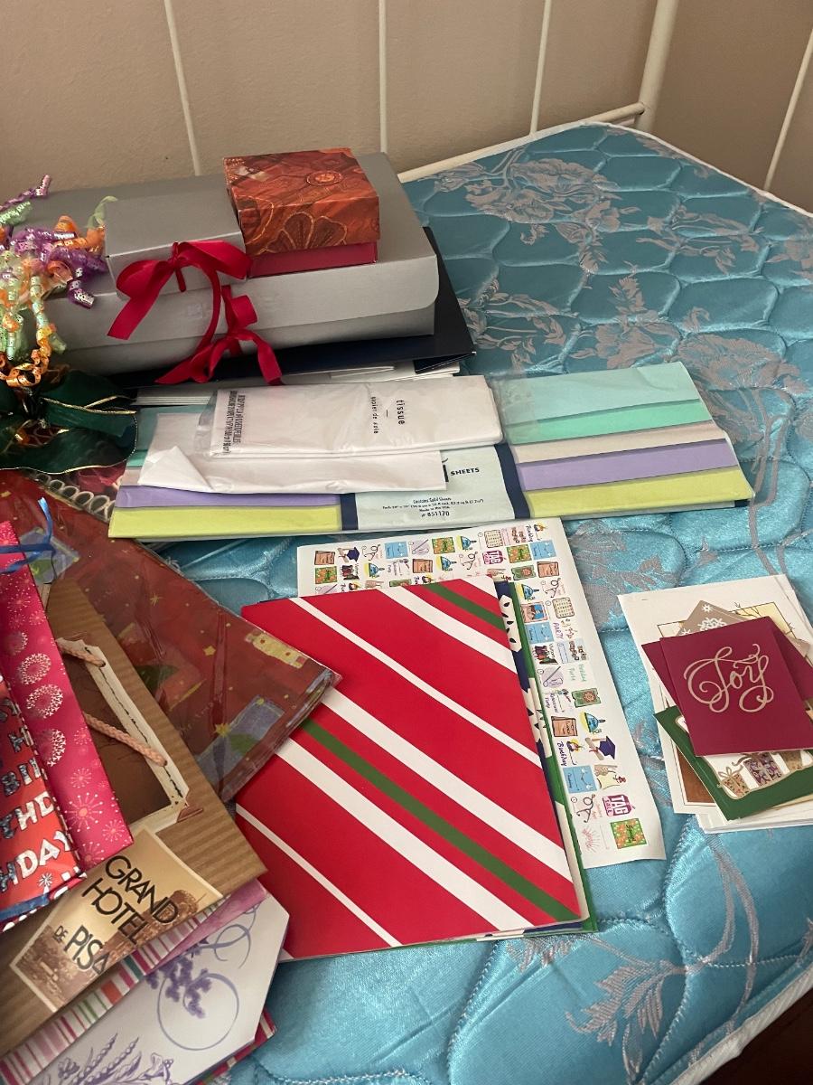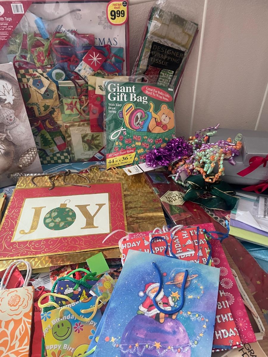 Gift bags, boxes, tissue paper and bows
