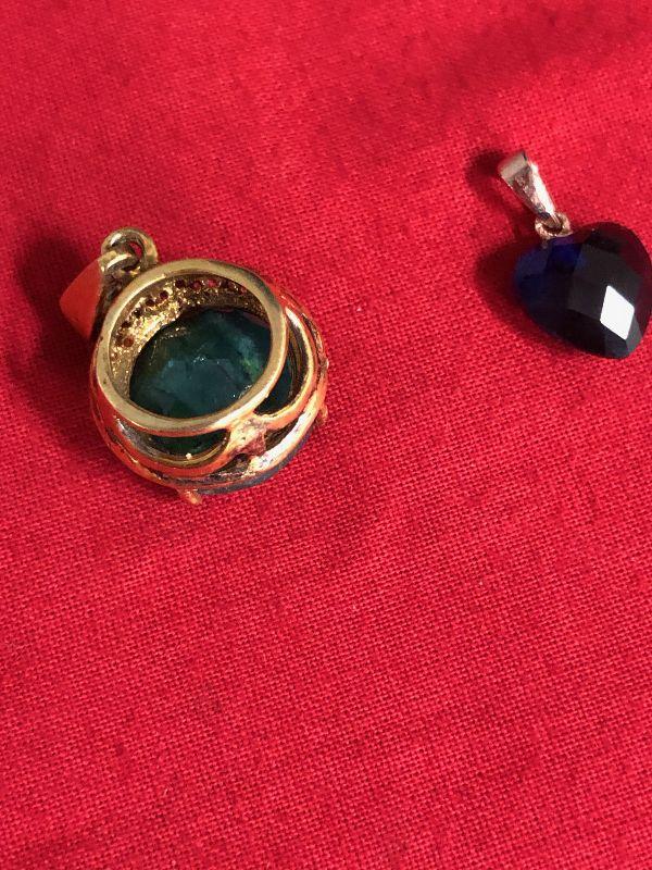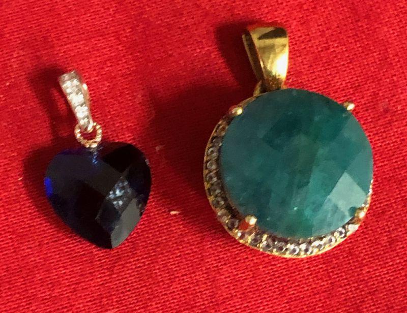 Lot #255 Jade Colored Pendant and Navy Blue Heart Pendant