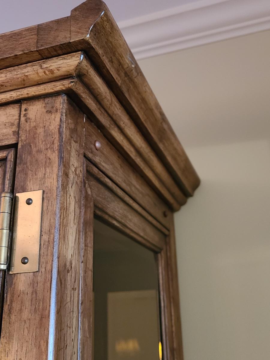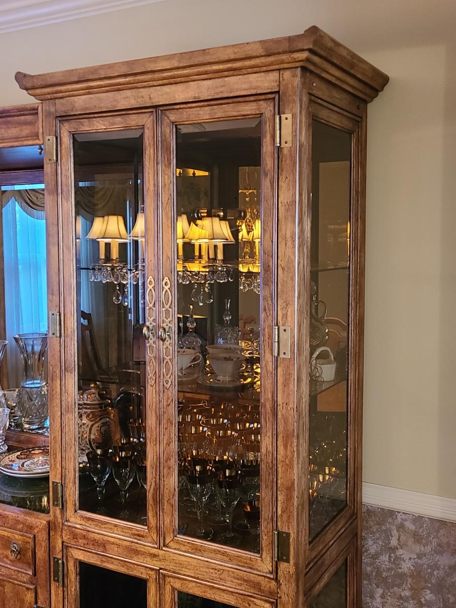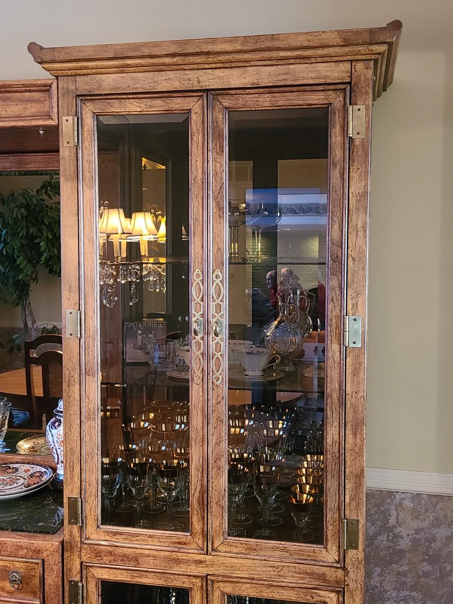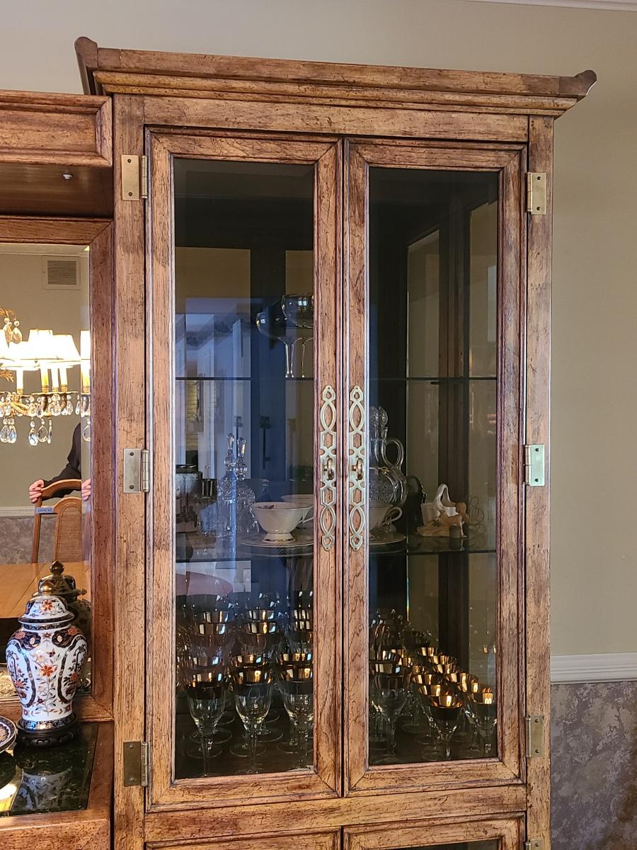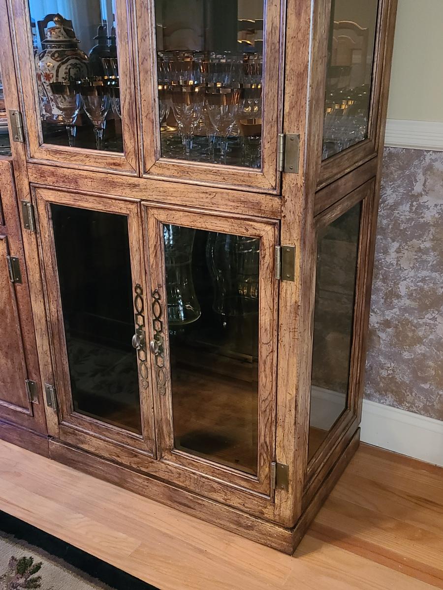 78x28x18 inches, This piece is part of a unit that we are breaking up into three in case people want one part of the unit since they can stand alone. If you want all three, then you will need to bid on all three. This is for the right hand display case. The back is mirrored, there are glass shelves, and brass hardware. This will be sold individually and the only place it will share wear is the two small holes where the top unit is connected, they can be plugged. This makes a gorgeous display cabinet, book cabinet, or art display in any room! This is one long piece so you will need to bring a truck. Glassware not included. Please see all pictures as they are the best representation of the items. The pictures show condition, measurements if taken, and what is included in the lot. Due to the large amount that we photograph and the time frame, we are not always able to take measurements. All items unless noted, are pre-owned and have been used. If you purchased furniture, you must bring help. We do not allow one person to carry large furniture out on their own. Bring help, tools and a truck for the safety of our client’s homes, and your personal safety. Company policy. Thank you.