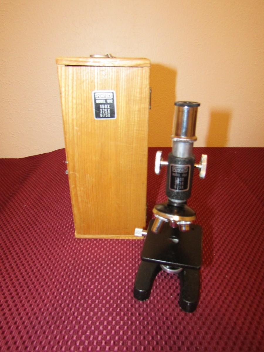 LOT 255 MICROSCOPE WITH WOODEN STORAGE BOX