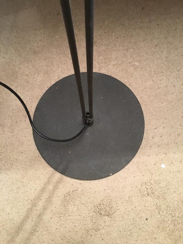 Floor lamp measures 13”D base x 73” tall. Also comes with two extra 300 watt bulbs.