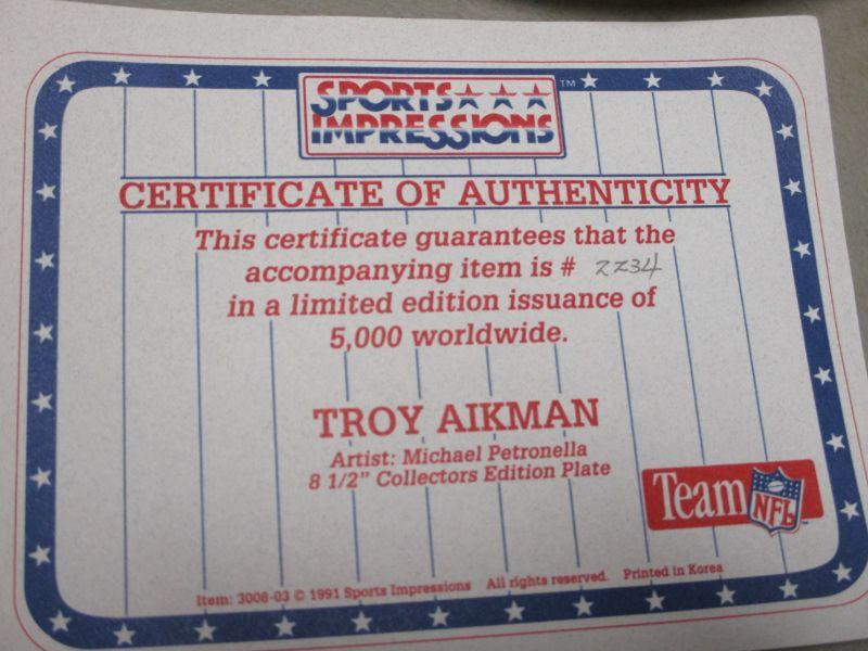 Lot 255 - Troy Aikman Cowboys Plate Sports Impressions