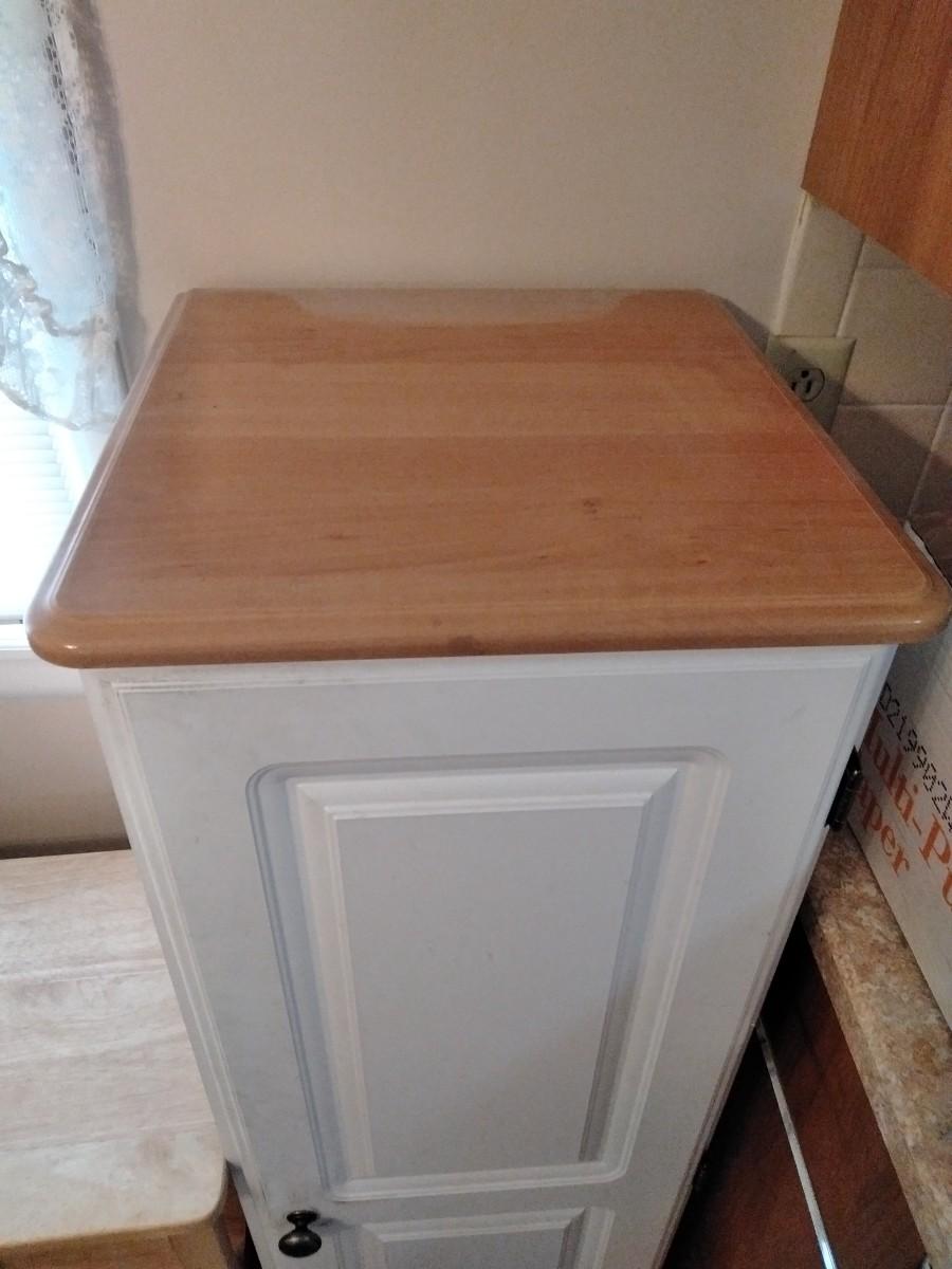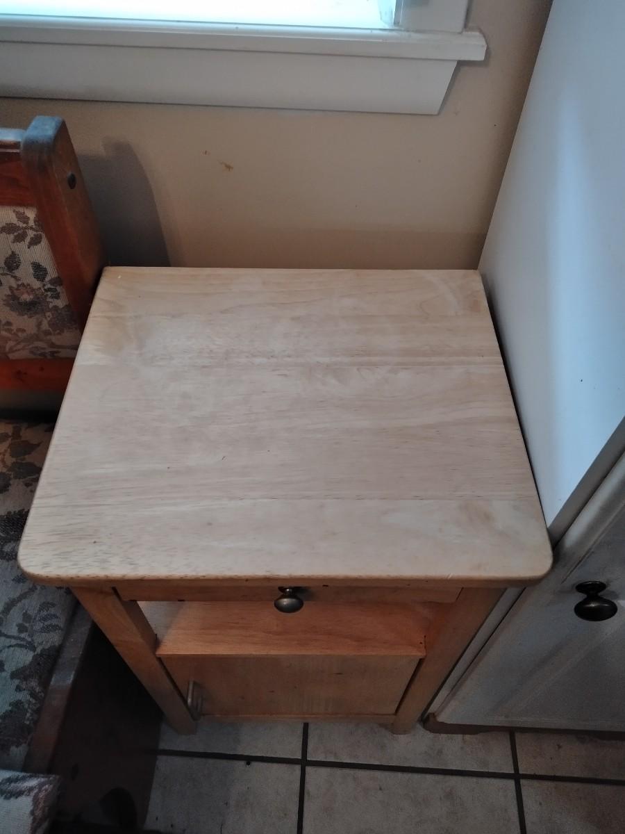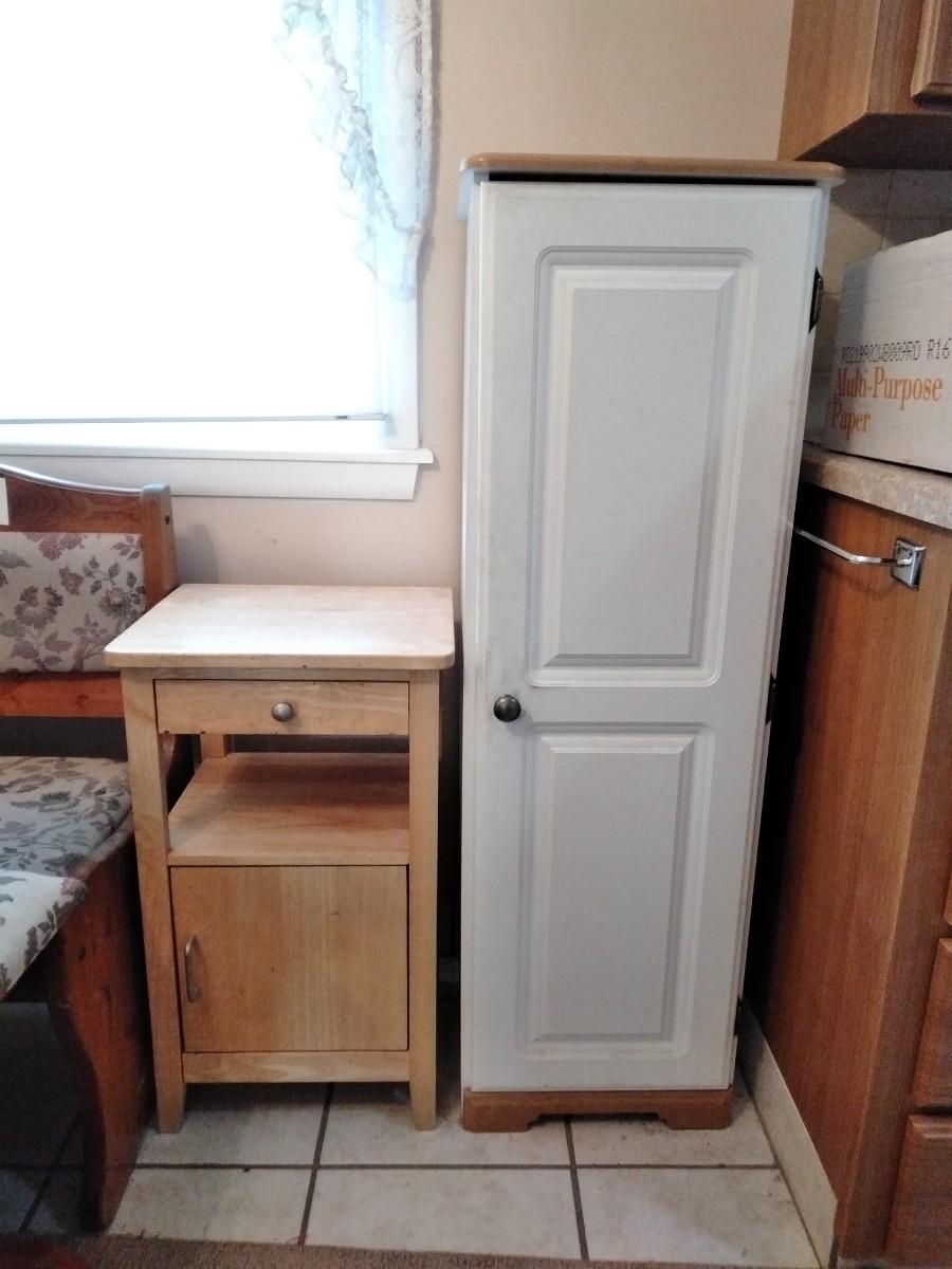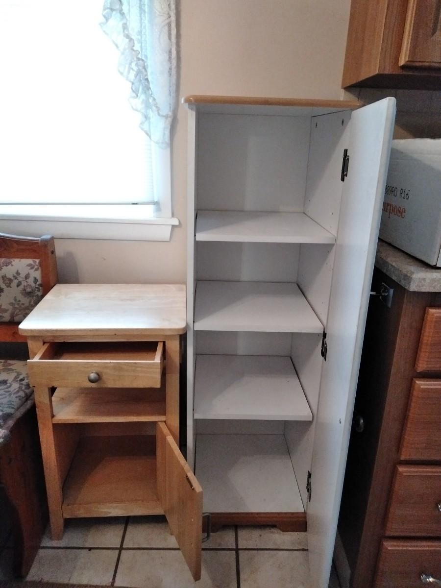 TWO PIECES OF FURNITURE. TALL CUPBOARD 48" X 15" X 16" SMALL STAND 27" X 16" X 14"