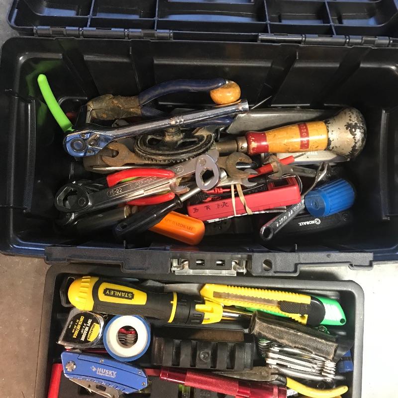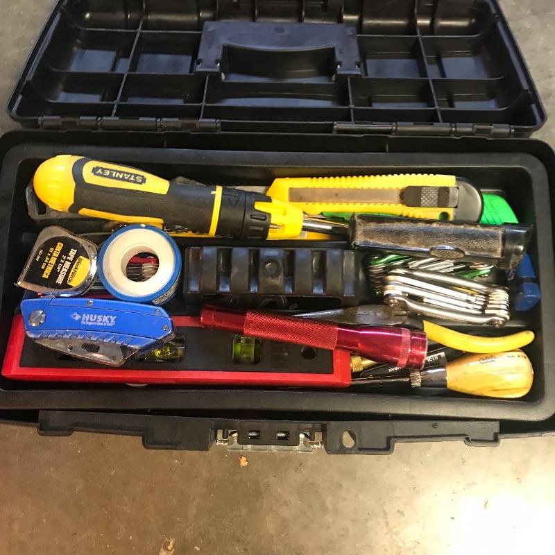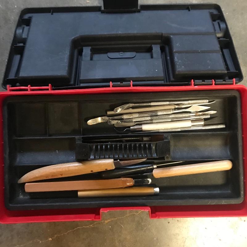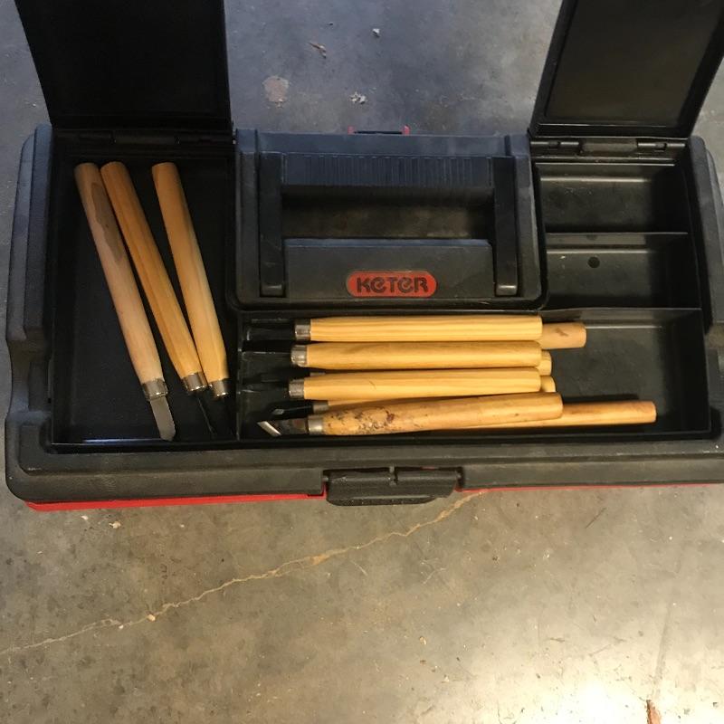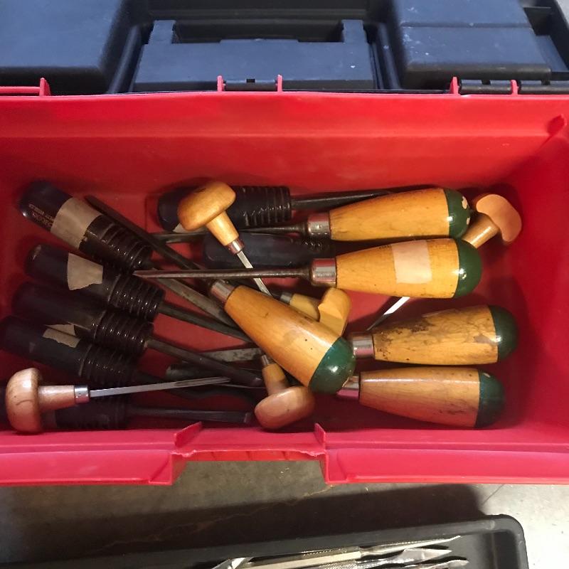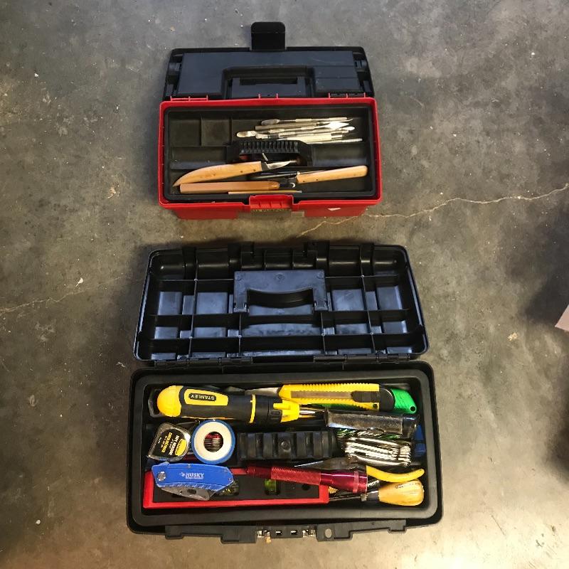Husky 16” tool box with assortment of vintage and current tools for your every day needs. Smaller Keter box has some precision carving tools and wedge tools. Local pick up only.
