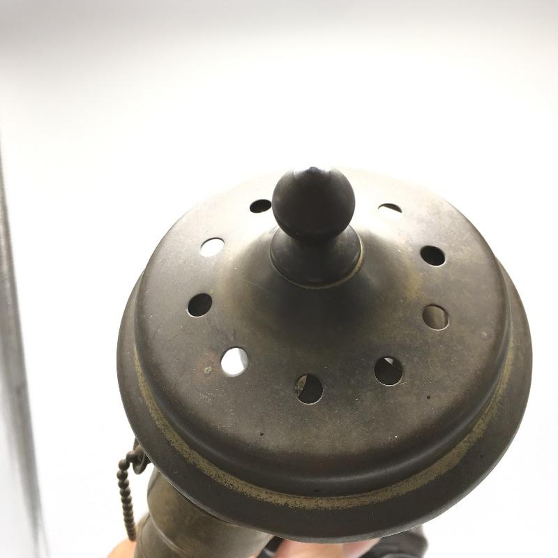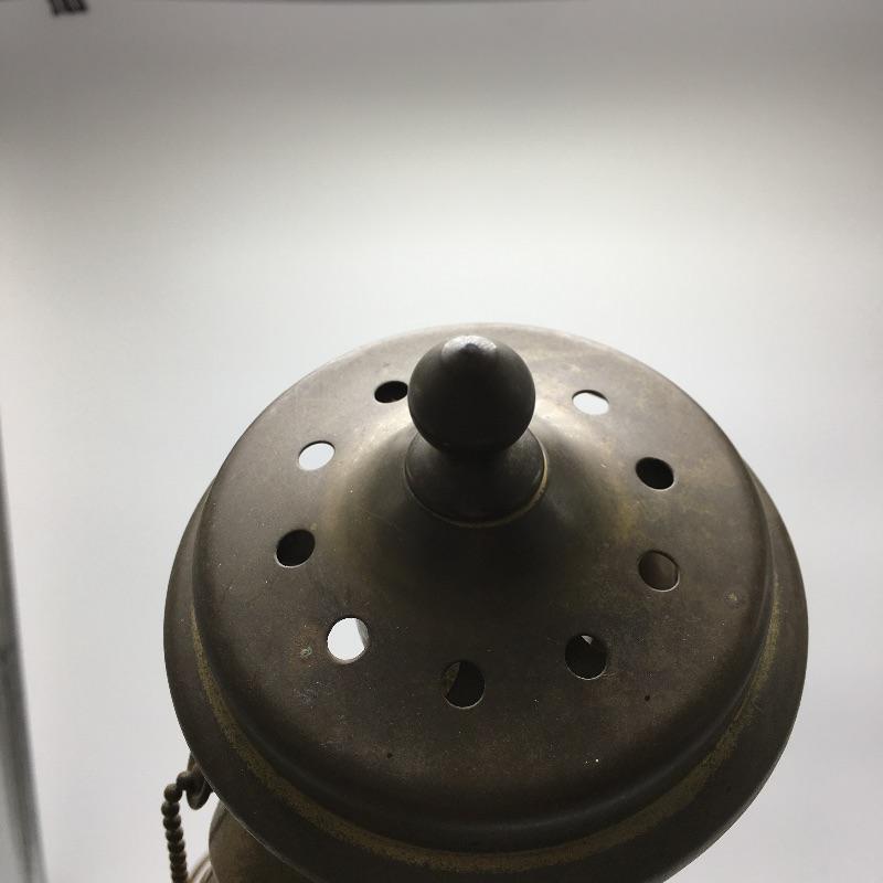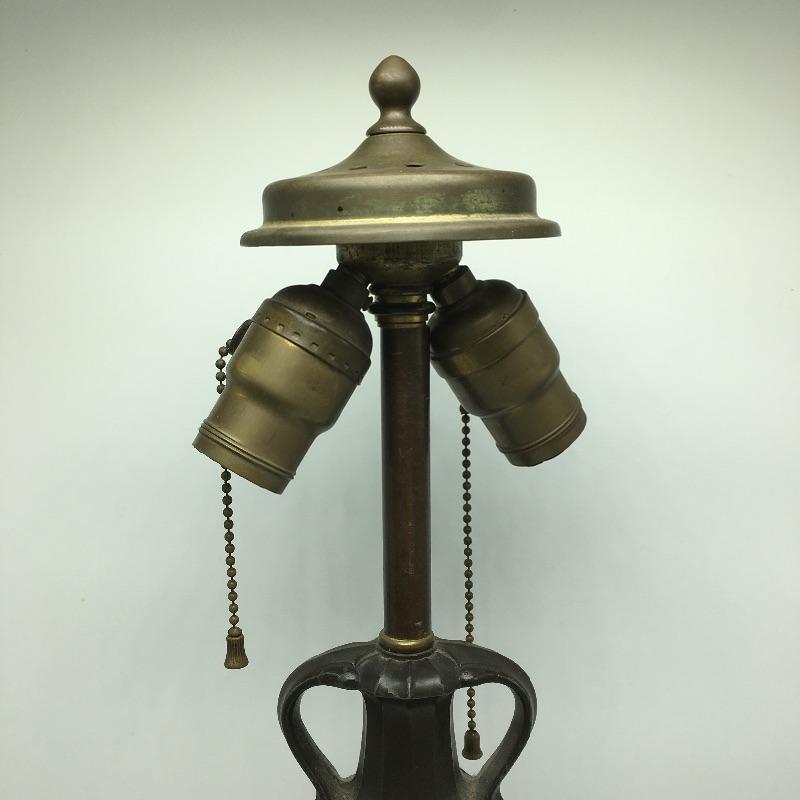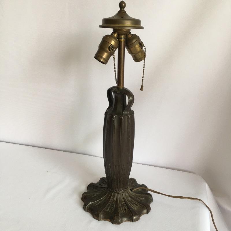 Vintage Art Nouveau metal lamp. Beautifully crafted lamp is a great conversation starter. Only one socket works as chain is stuck.