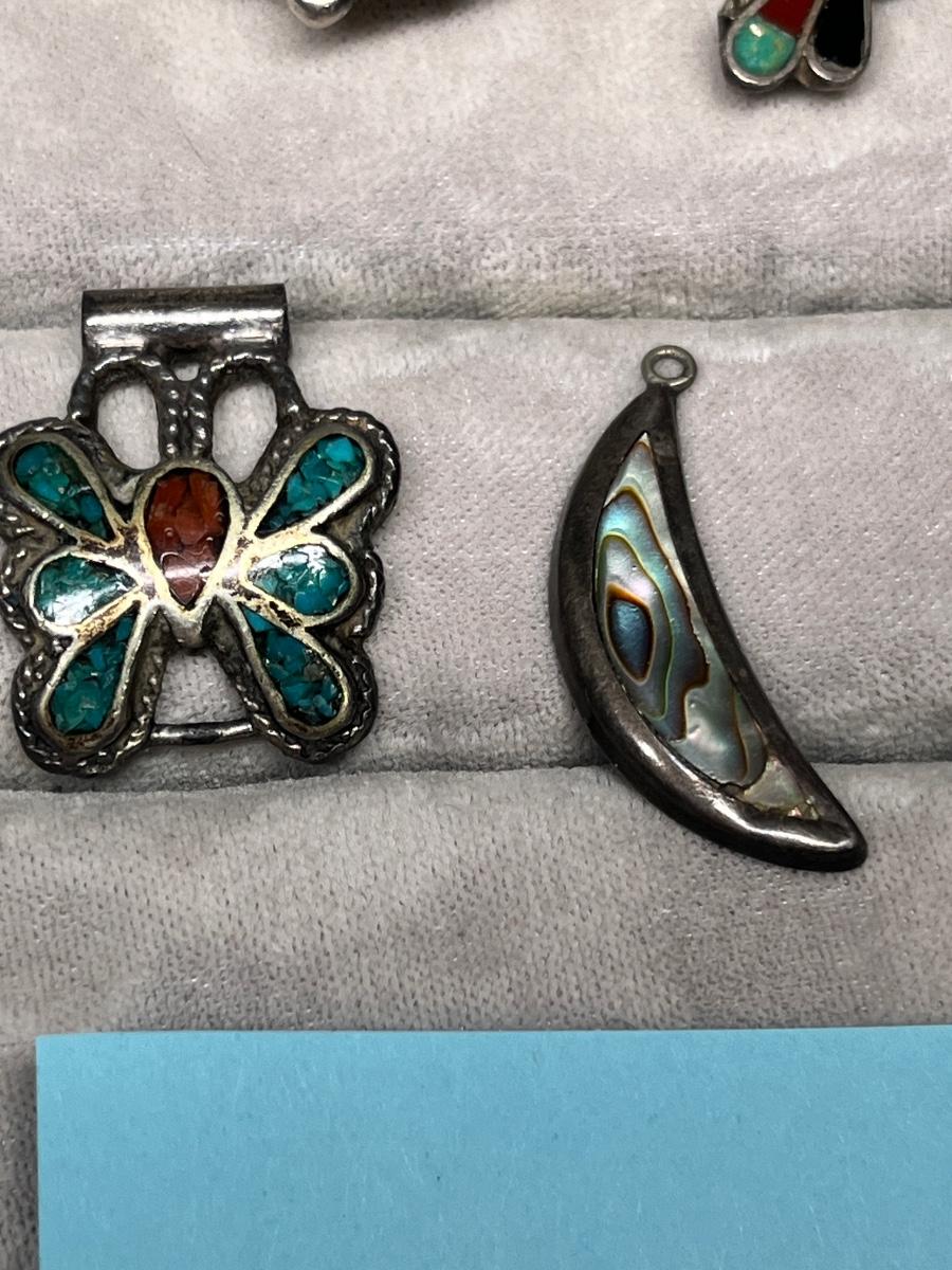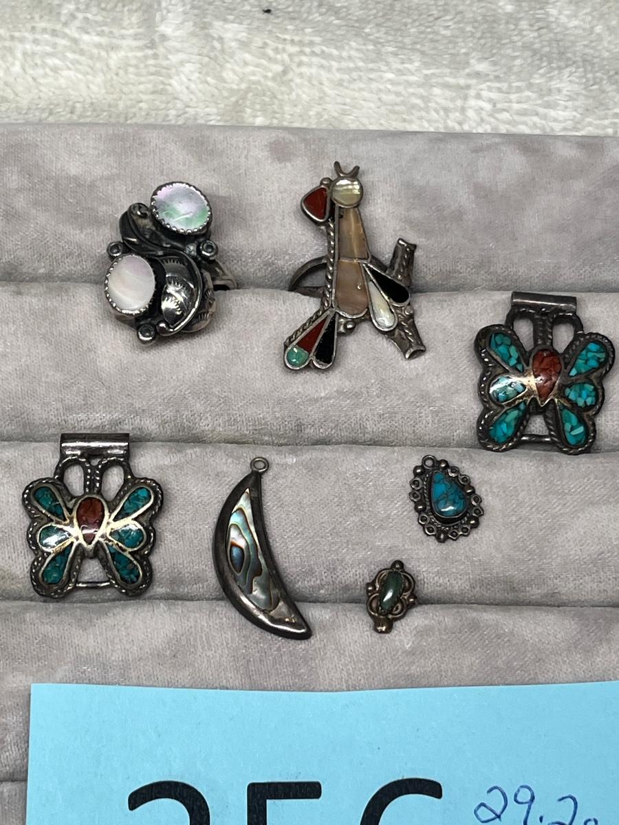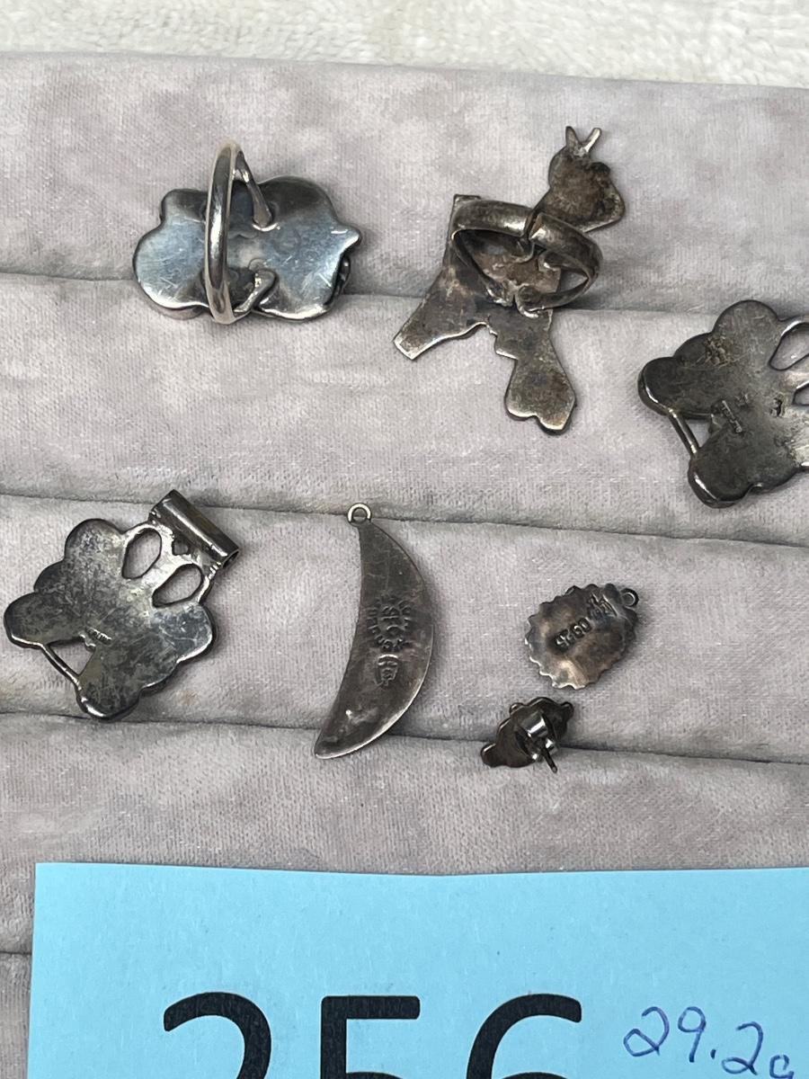 Butterfly watch tips, 2 rings, earring singles and moon charm. 29.2 grams