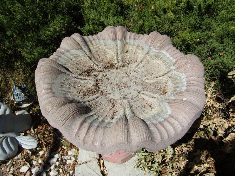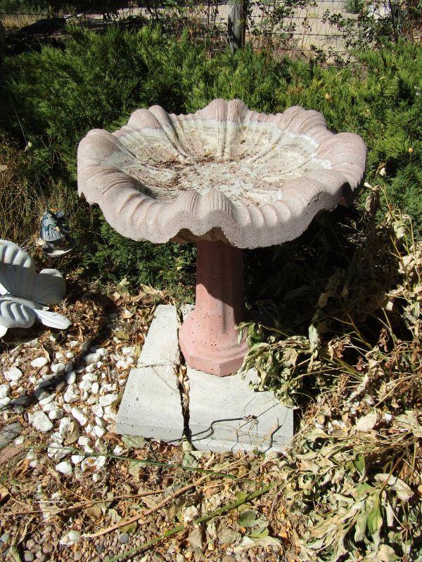 THE PAVER THAT THIS BIRD BATH IS SITTING ON IS BUSTED UP BUT THE BIRD BATH (2 PIECES) IS IN GOOD-VG SHAPE