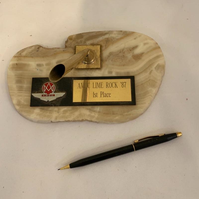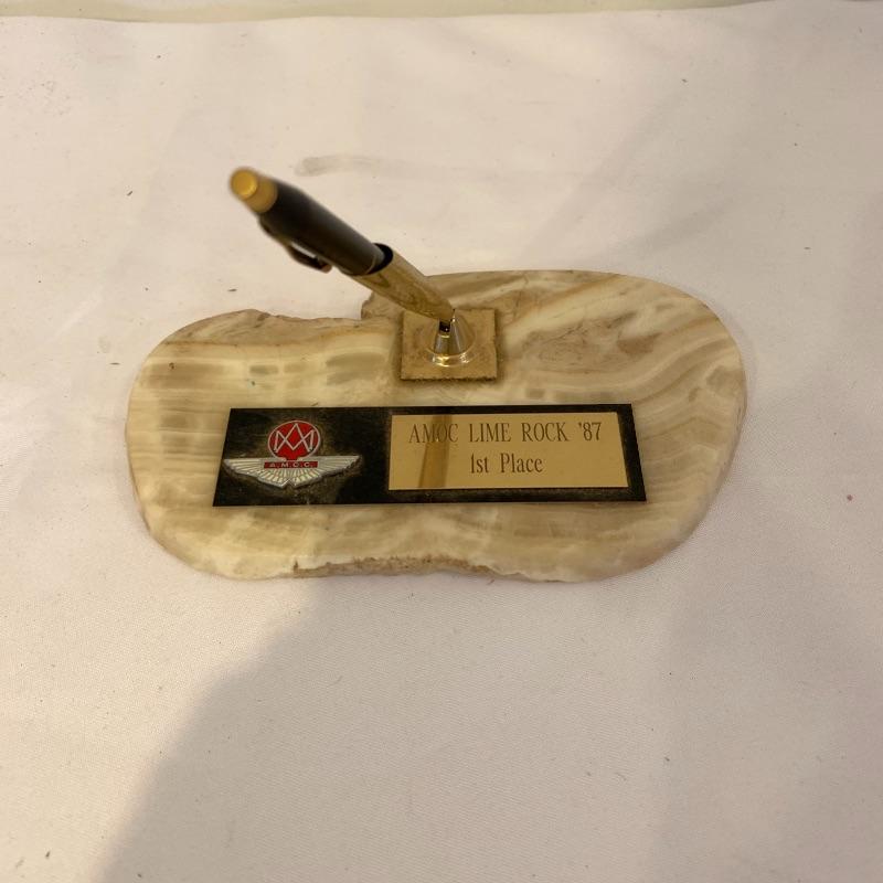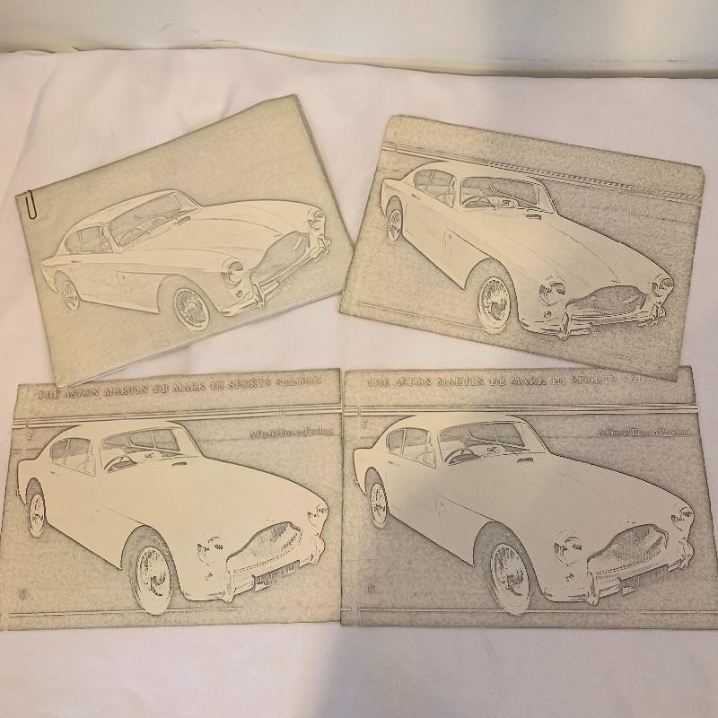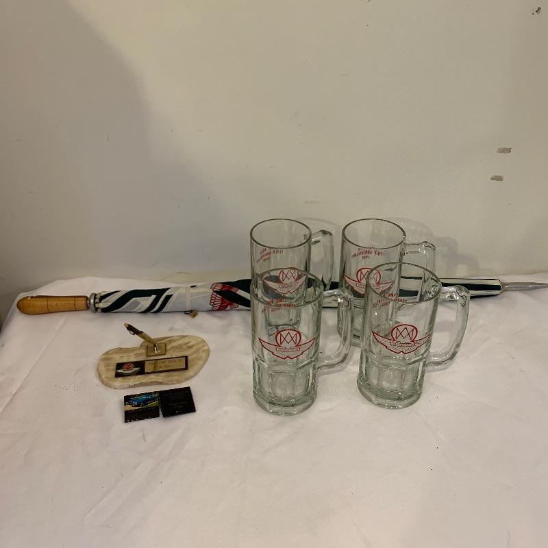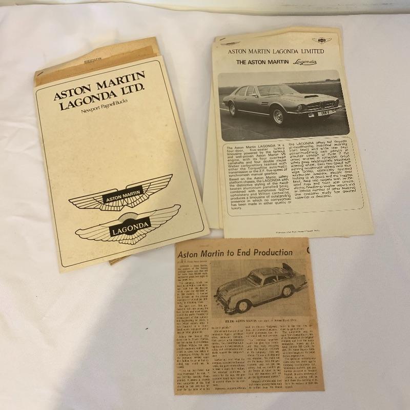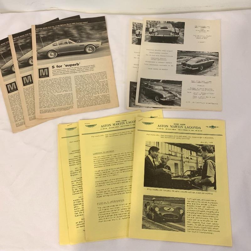 Calling all Aston Martin owners! This lot includes everything an Aston Martin Owners Club member could need! From envelopes to several volumes of registers to a small tote, this lot has it all! It also includes several books that list members and also function as a telephone directory. Along with these, it comes with an umbrella, four large glass mugs, pen with a marble pen stand, and matchbooks. Lastly, it contains two large red binders filled with directions on how to fix up different types of problems on cars. Local pickup only.