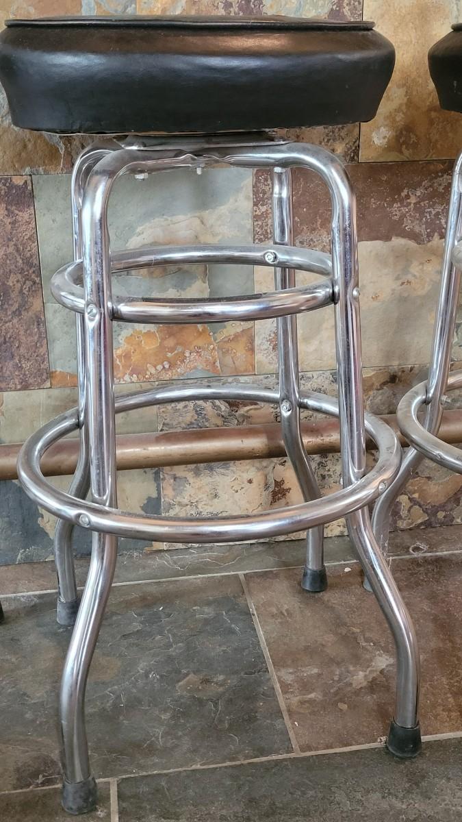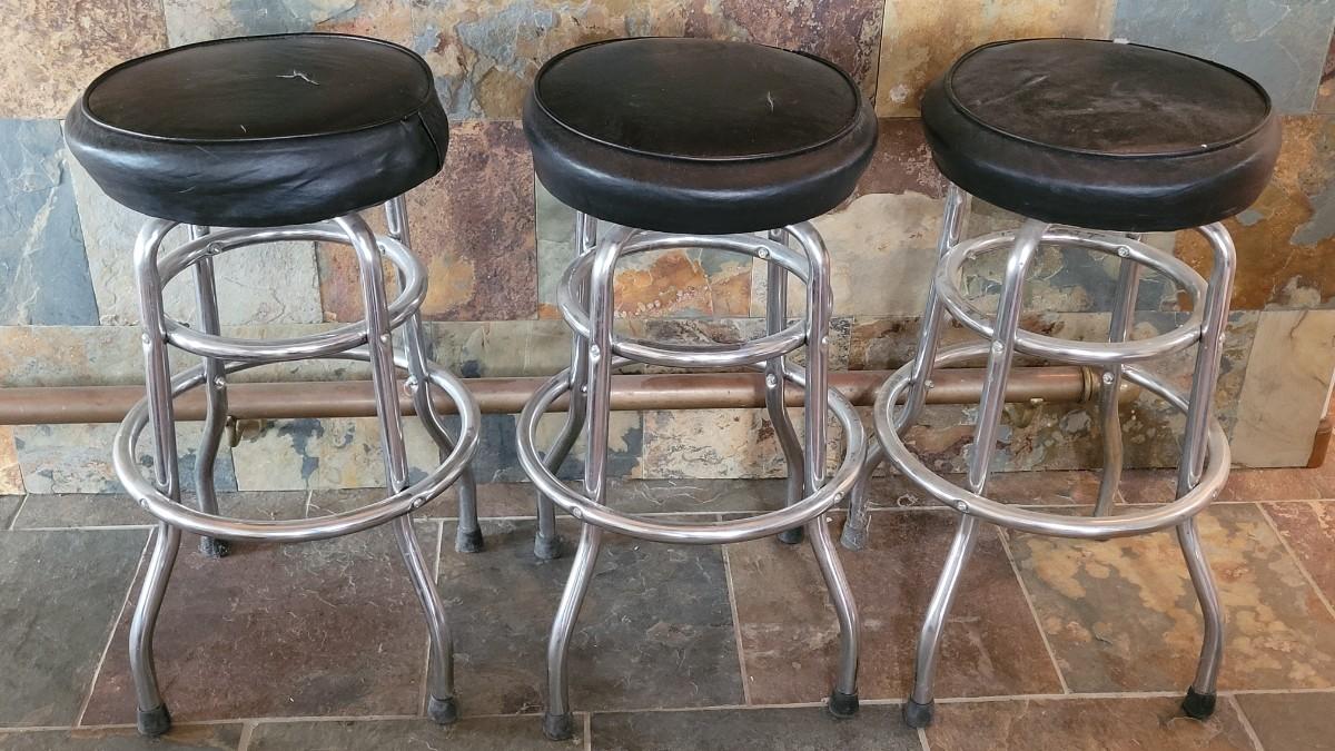Lot 256: (3) Black Vinyl & Chrome Bar Stools (Seats have Spilt Vinyl