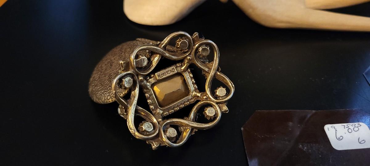 Antique group of photos that include some great Tin Types and a handmade FLORENZA Brooch that has some Antique Photos inside of what appears to be a faithful couple.