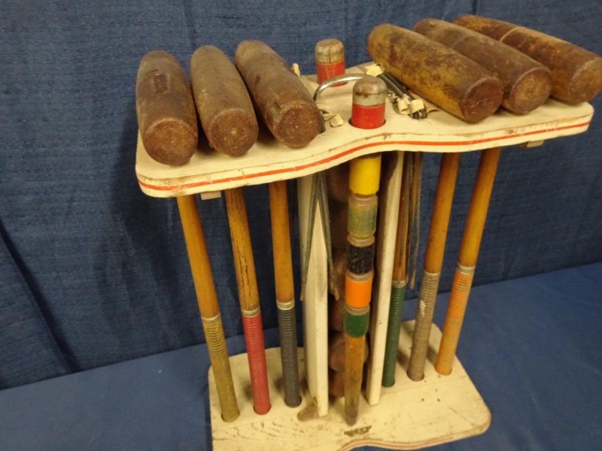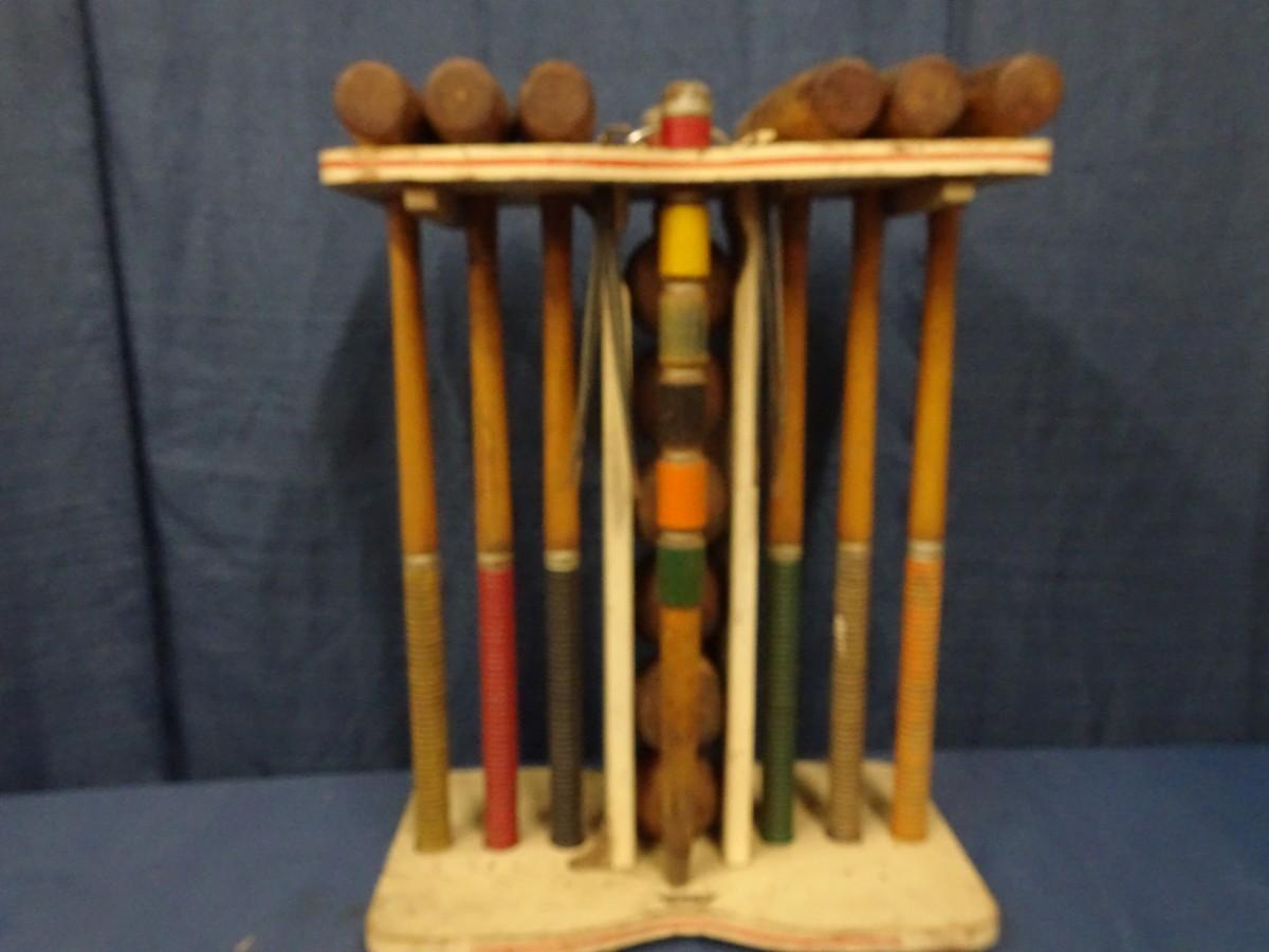 LOT 256. VINTAGE SOUTH BEND CROQUET SET