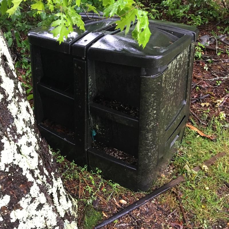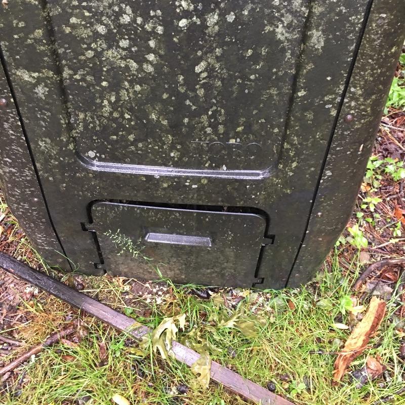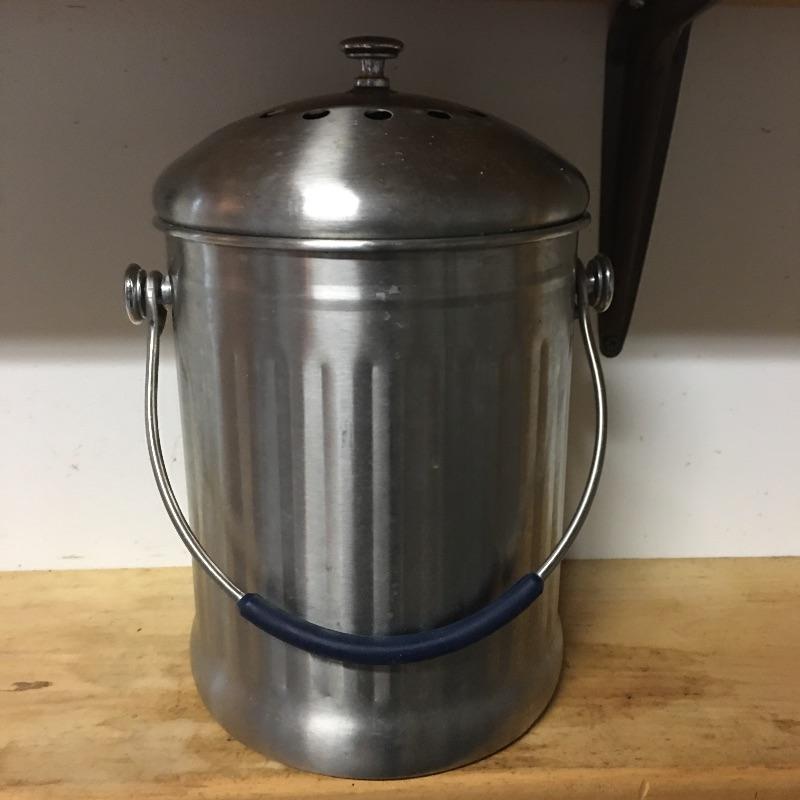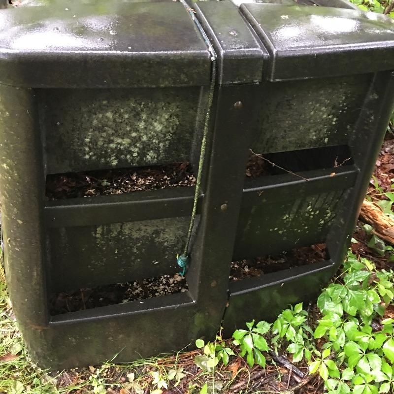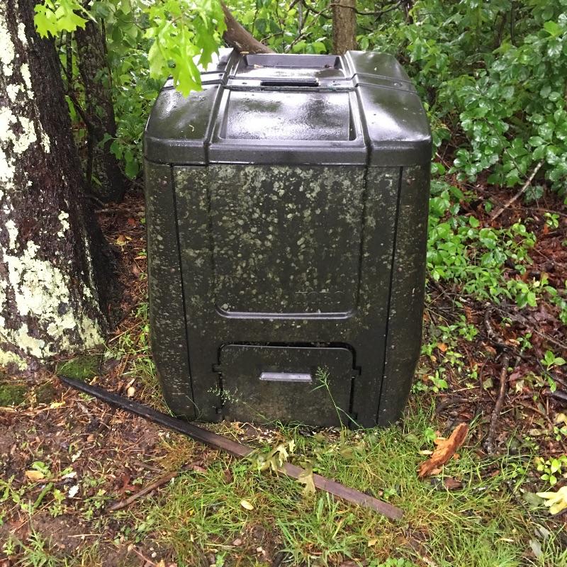 Compost bins. Lot includes indoor compost can that measures 7”D x 11.5” and a outdoor compost bin that measures 27” x 31” x 32”. Turn you kitchen scraps into gardeners gold with this environmentally friendly lot.