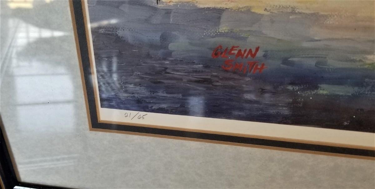 Signed and numbered framed print by Glenn Smith - double matted. #21/65 - good condition. Measures 25.5" across, and 21.5" tall.