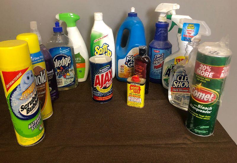 Lot# 256 Gray Crate (included) of Cleaning Supplies