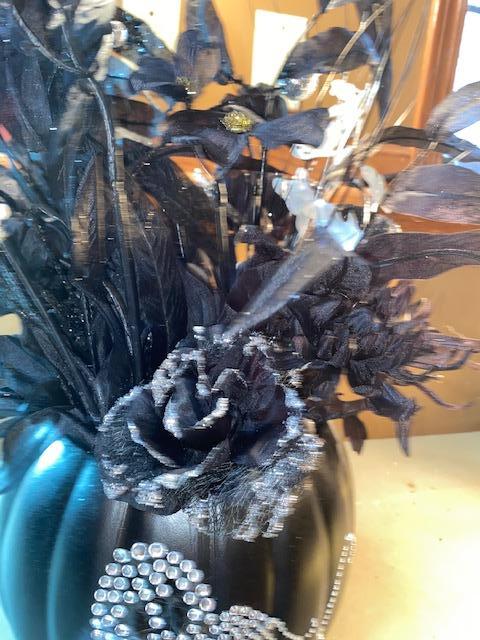 black and silver, rhinestone ghosts on pumpkin.