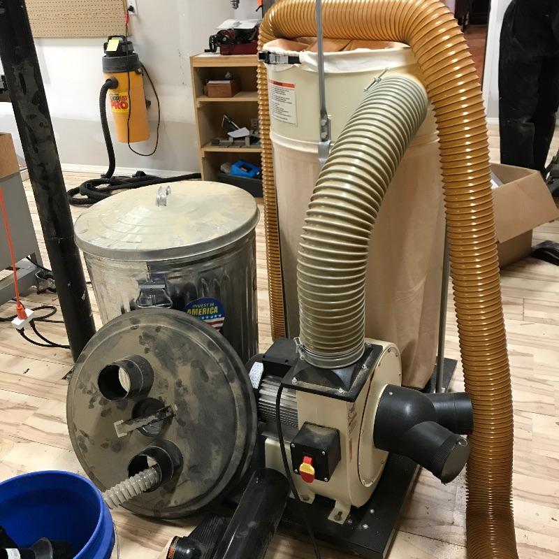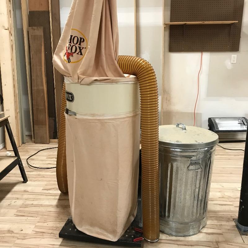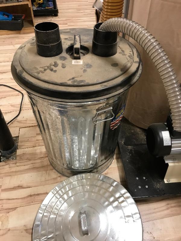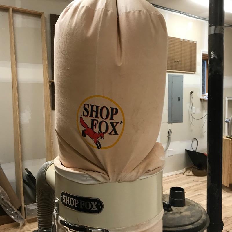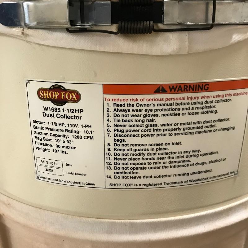 Industrial strength for the dustiest shop! Shop Fox W1685 Dust Collector works well and appears in very nice condition. Machine comes with nozzles and other accessories including a 30gal galvanized trash can with market lid and a perfect fitting heavy duty plastic lid with hose attachment holes. See photos. No shipping.