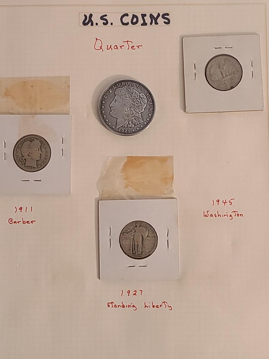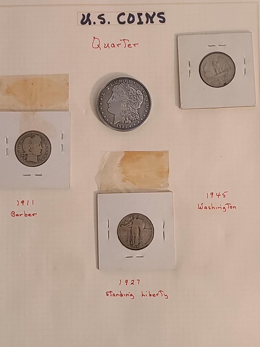 Four Coins: We can't guaranteed whether uncirculated or not, so please see condition in pictures. These might have been removed from the sheet to take pictures of the backs. The sheets are just for identification. The pictures show condition, measurements if taken, and what is included in the lot. Due to the large amount that we photograph and the time frame, we are not always able to take measurements. All items unless noted, are pre-owned and have been used. If you purchased furniture, you must bring help. We do not allow one person to carry large furniture out on their own. Bring help, tools and a truck for the safety of our client’s homes, and your personal safety. Company policy. Thank you.