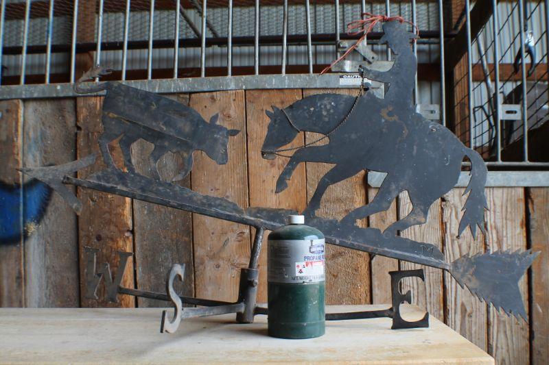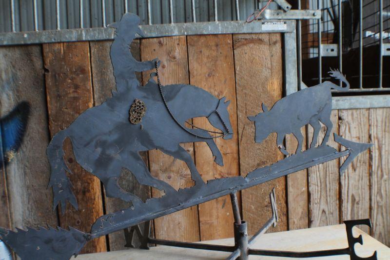 Lot #256: Vintage Large Steel Weather Vane Top Section w/ Cowboy Roping Calf (No Base)