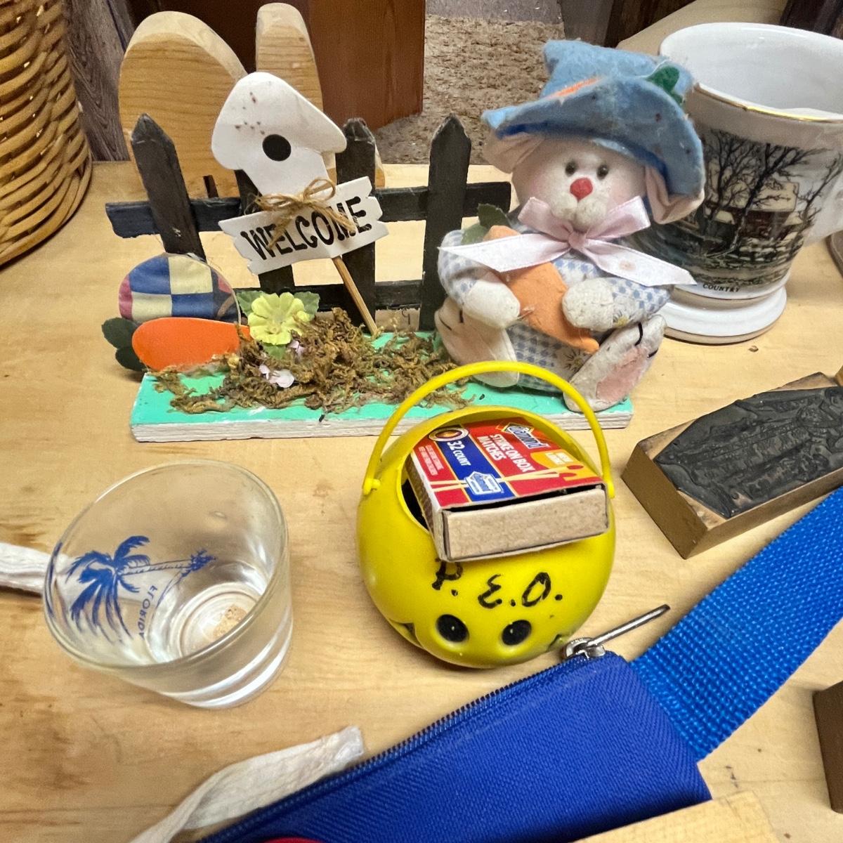 8. Sizes are approximate, you can estimate as our lot number signs are 3.5" long. Also we use an 18" & 36" measuring stick.  We try on certain things to do actual measurements. No guarantees on actual sizes, we try our best!