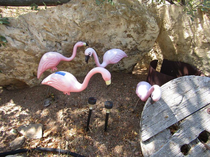 TIN BUTTERFLIES ARE A BIT RUSTY AND THE FLAMINGOS ARE A BIT FADED