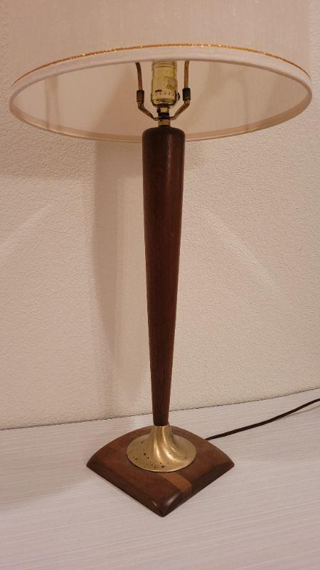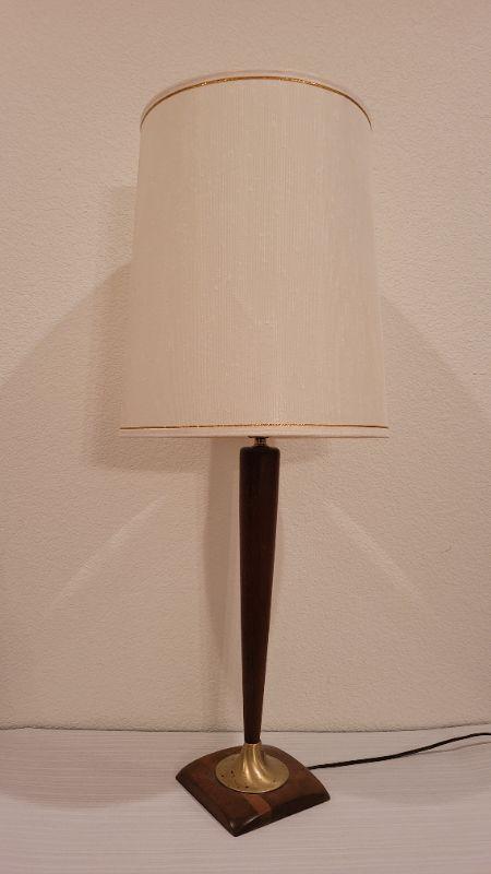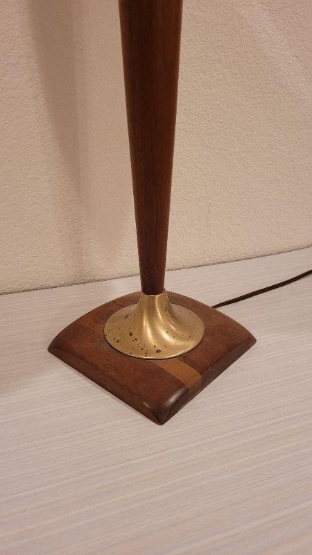 Lot 257: Vintage Mid Century Modern 35.5" Tall Brass and Teak Table Lamp TESTED A+