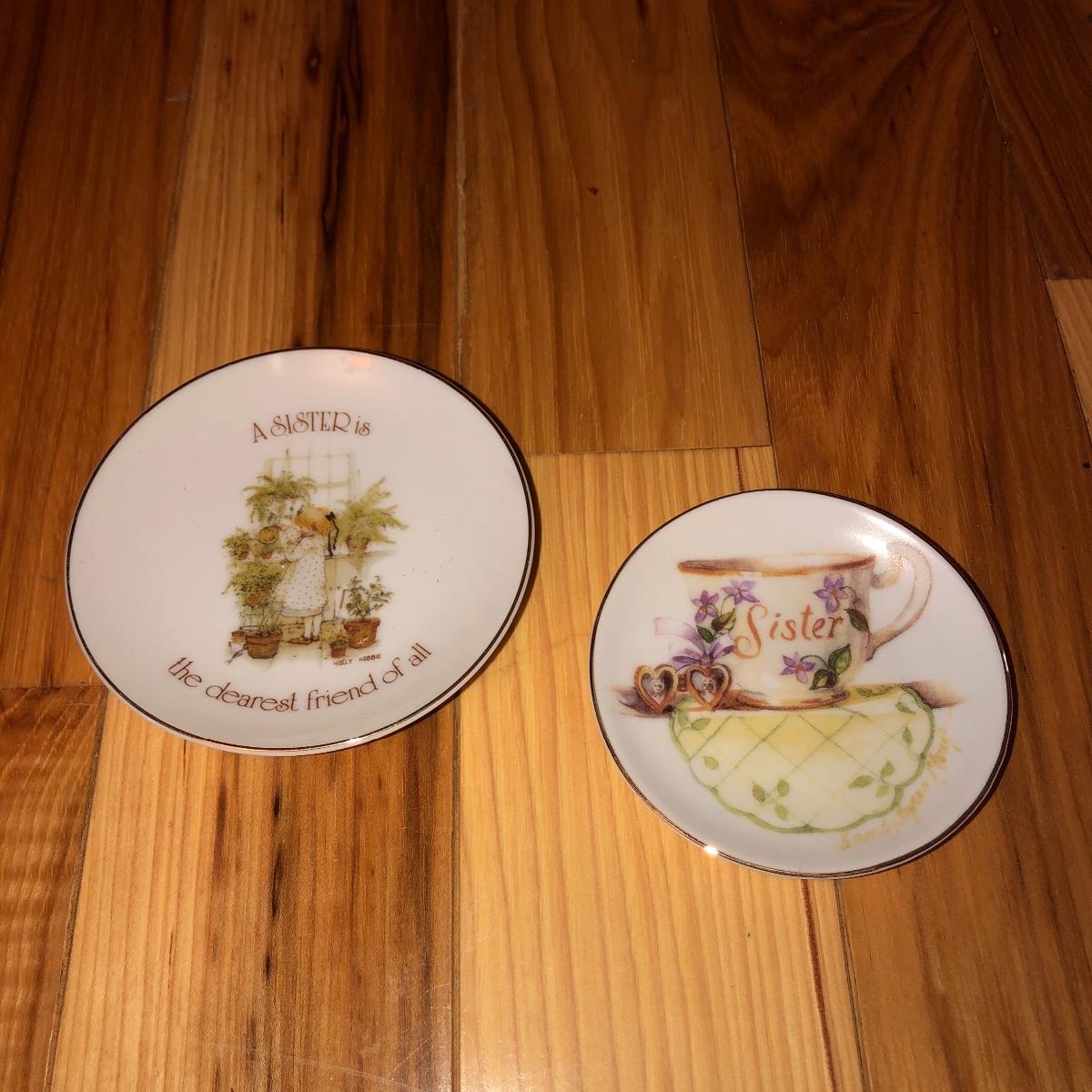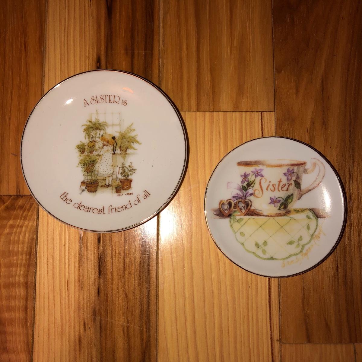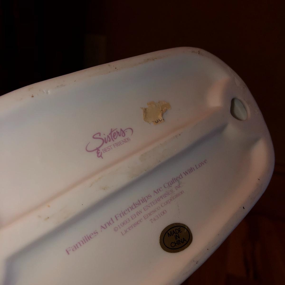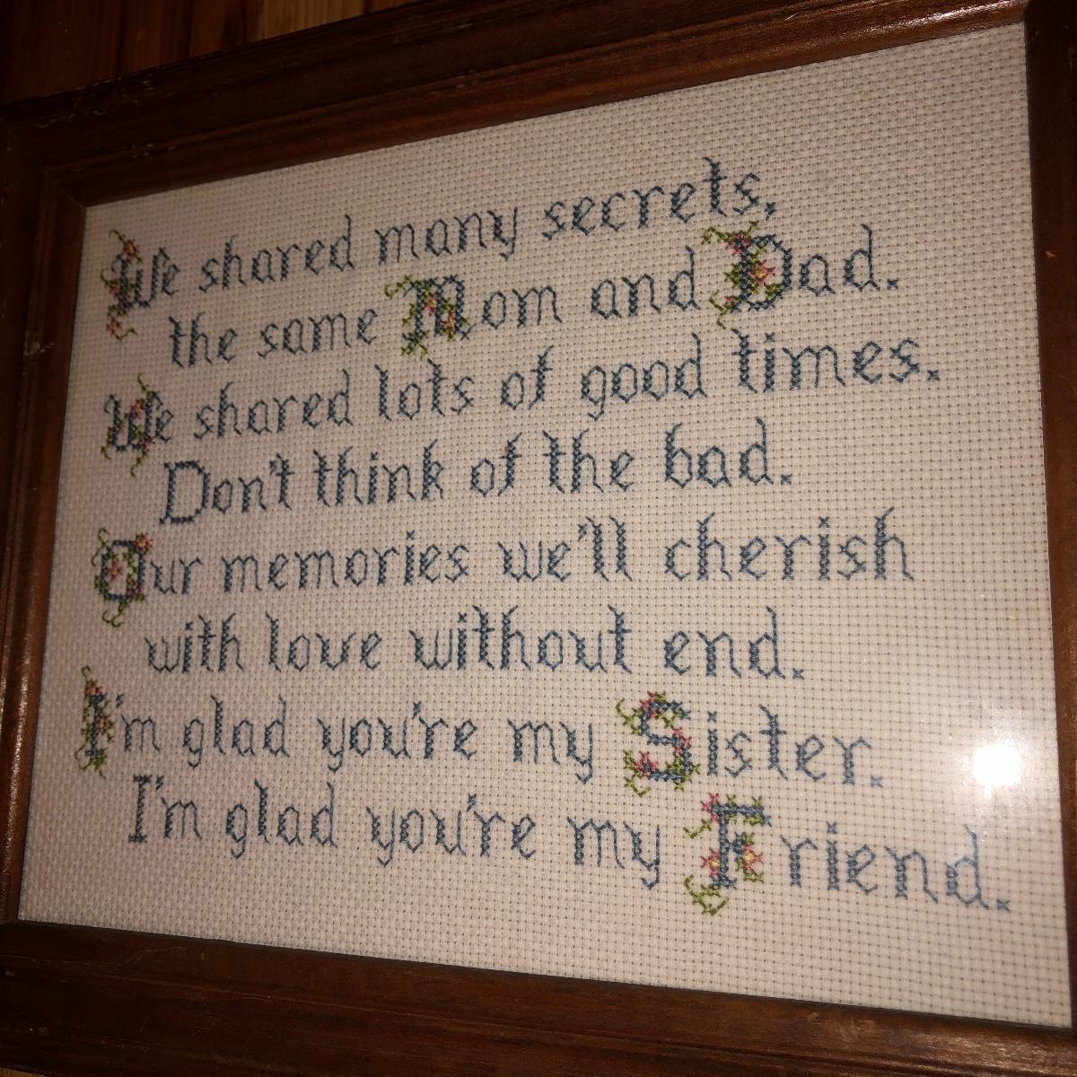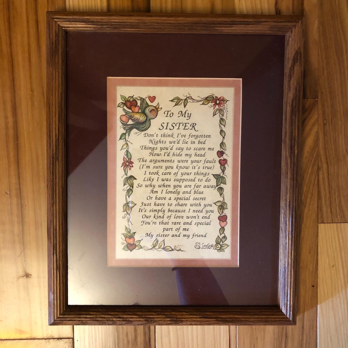 For those of us who have sisters, we know how special they can be. Celebrate sisterhood with these sister themed pillows, wall decor, quotes, and more. There are three tapestry pillows that say “Sisters are blossoms in the garden of life” and are about 15” x 15”, a Boyd’s Bears small rectangular tapestry pillow that says “Sisters help hold each other up”, eight framed quotes and sister themed mantras, small wall hanging saucers, a Sisters & Best Friends ceramic decoration of a Grandmother and two sisters embroidering a quilt, and lastly, five sister themed books. The framed embroidery quote is 10” x 12”. This lovely lot has enough to be shared between sisters; decorative reminders of how important they are!