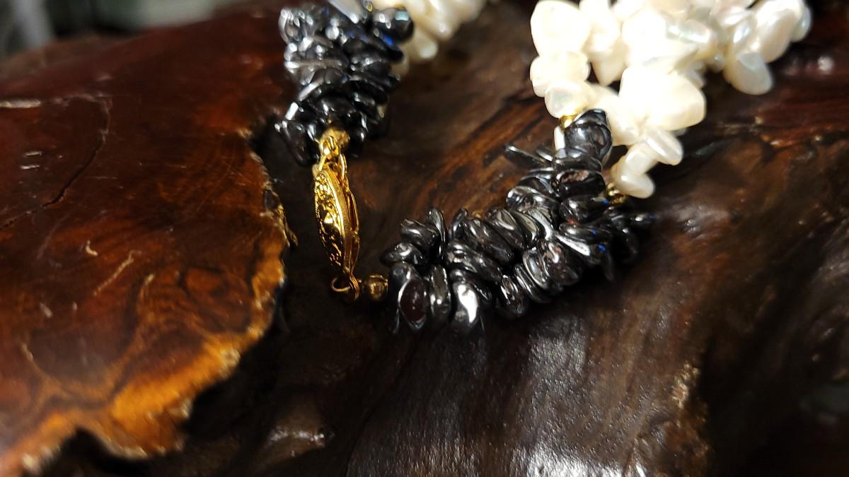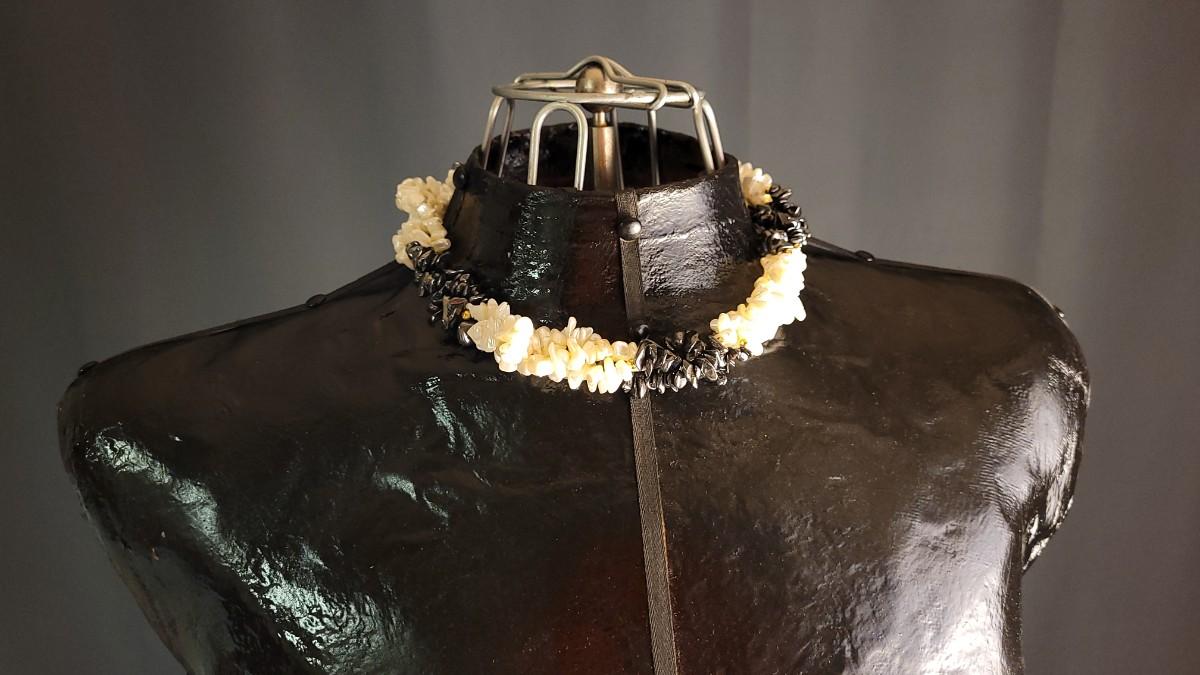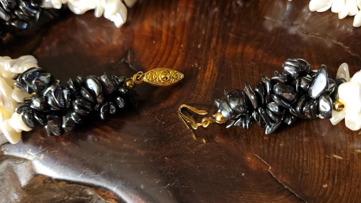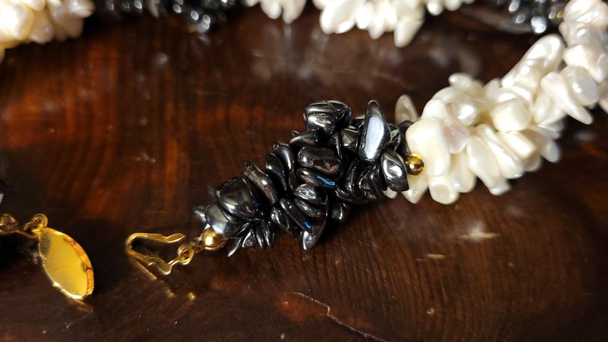 This lot features a Vintage Faux Raw Pearl Bead Necklace in Black and White. The drop appears to be about 6.25".