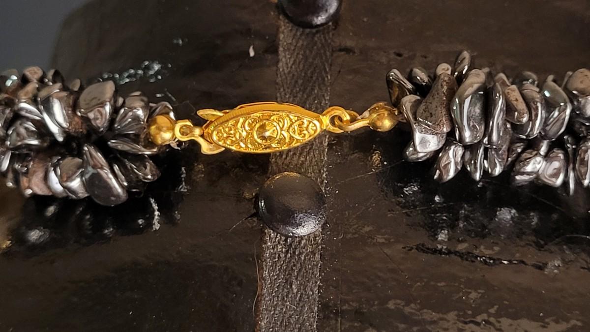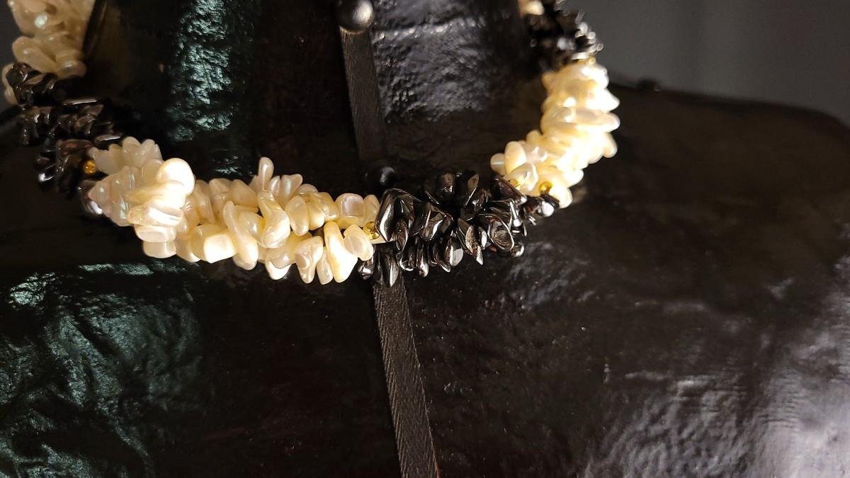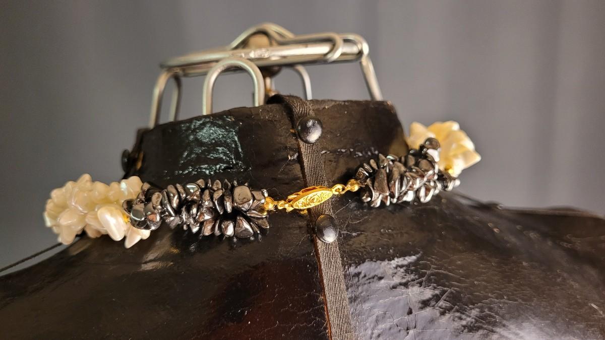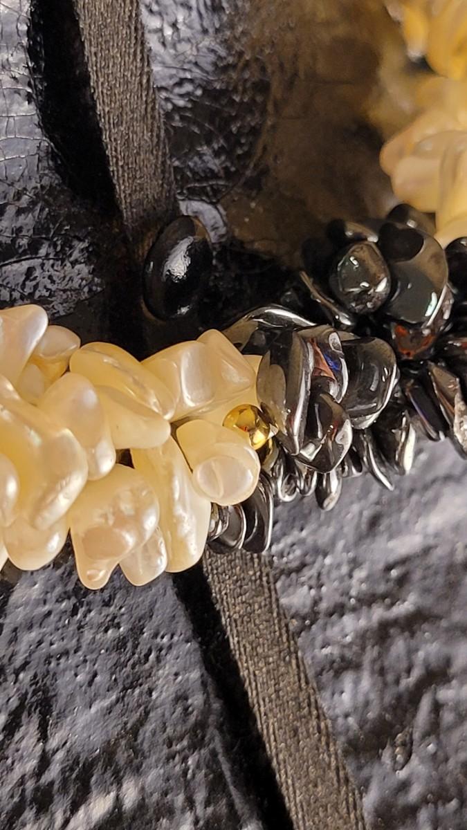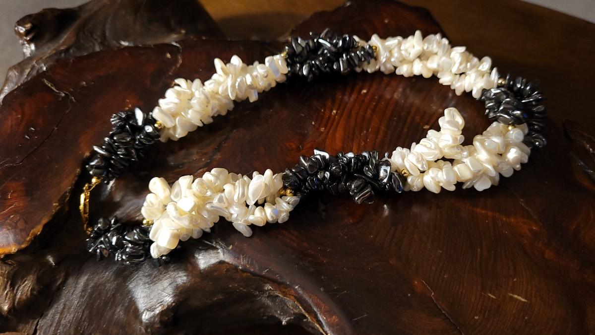 This lot features a Vintage Faux Raw Pearl Bead Necklace in Black and White. The drop appears to be about 6.25".