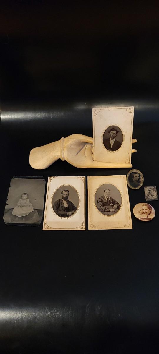 Lot 257: Antique Group of Tin Type Photos and Buttons