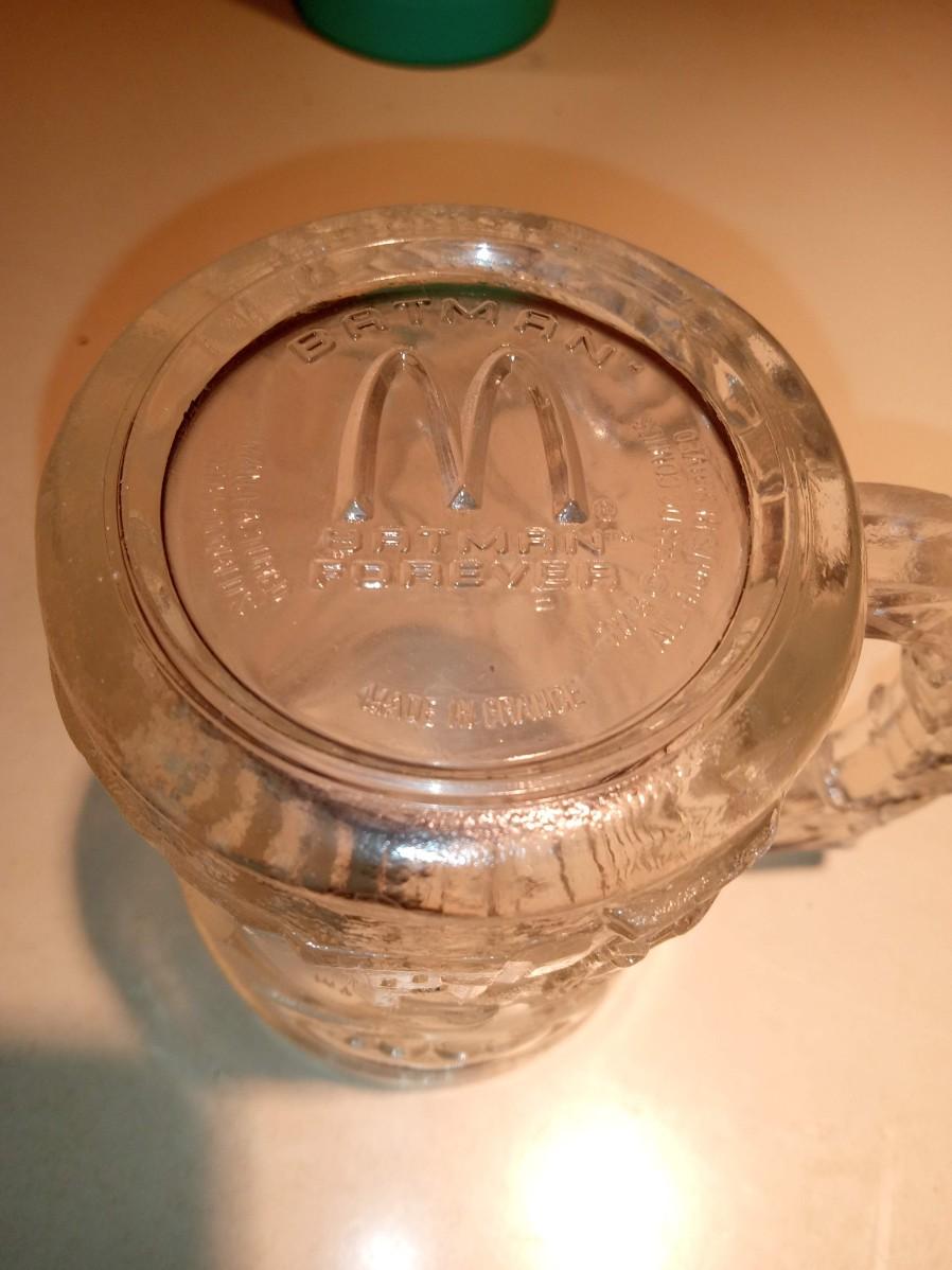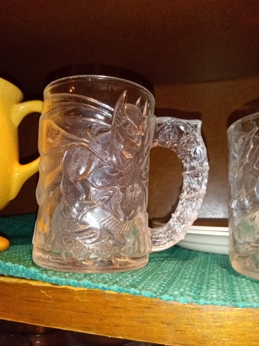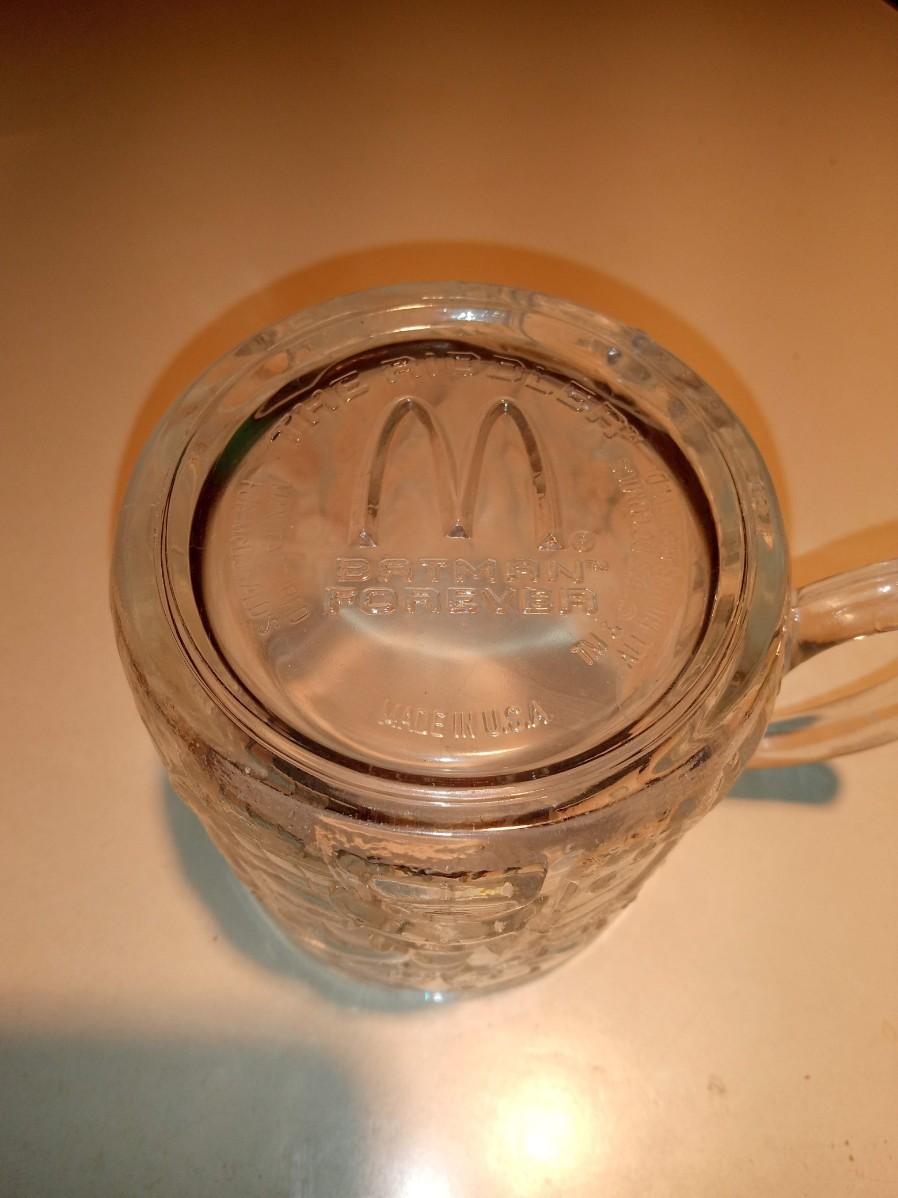 4 GLASSES WITH RAISED ROOSTERS, 4 MOSAIC-LIKE GLASSES, 2 PEPSI COLA, 4 STATE FARM COFFEE MUGS, 2 BATMAN FOREVER MCDONALD'S GLASS CUPS, 1 FLINTSTONES MCDONALD'S GLASS CUP