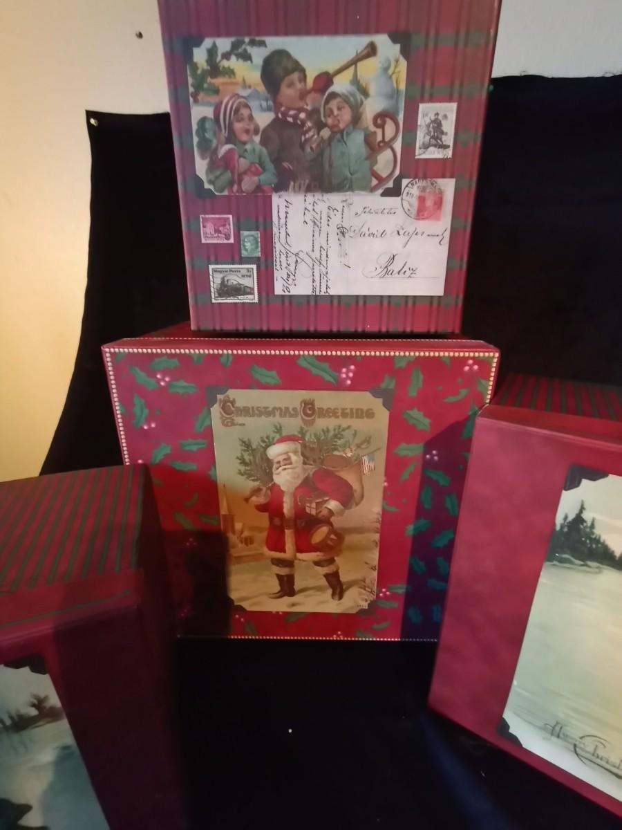 4 GIFT BOXES 12" SQUARE IS LARGEST AND 2 BOXES OF ORNAMENTS