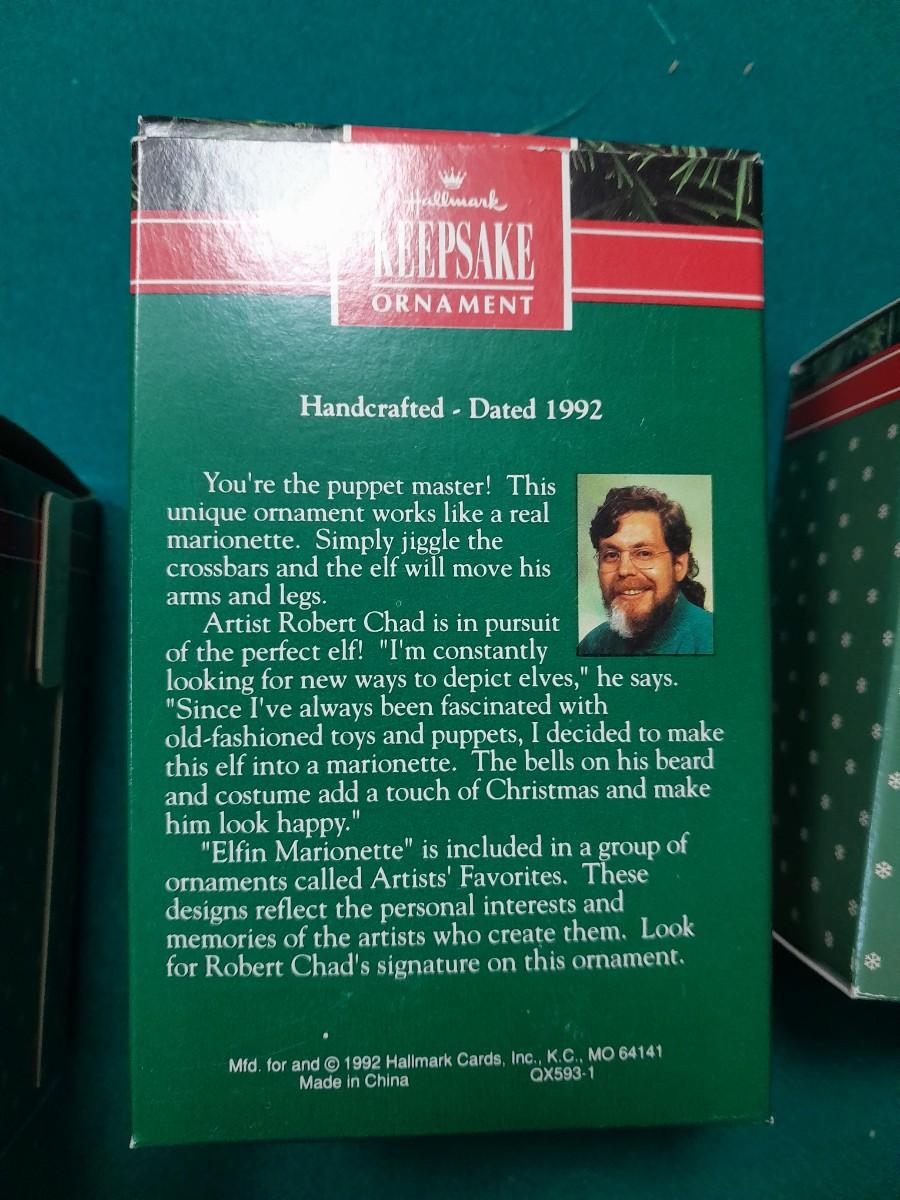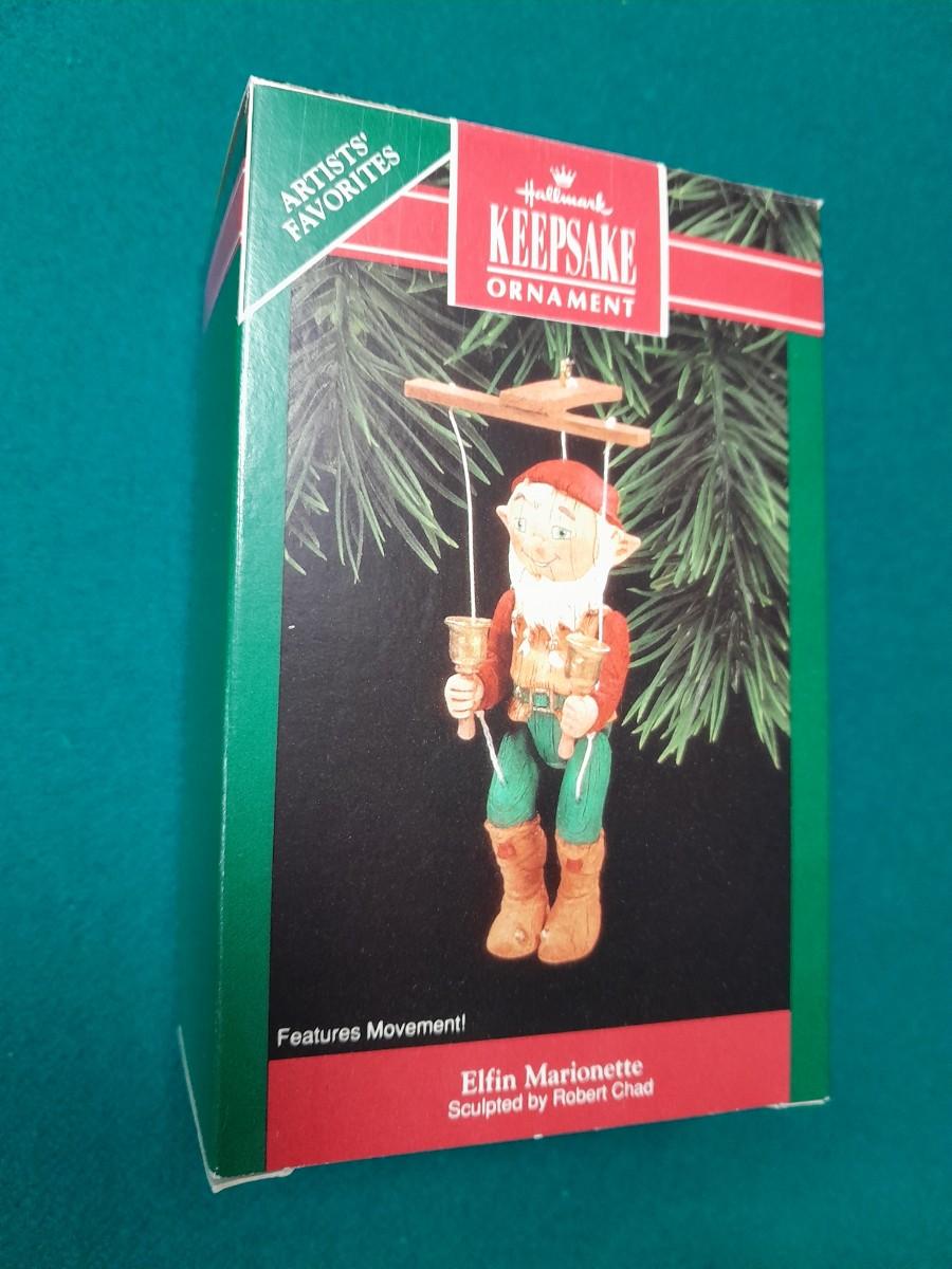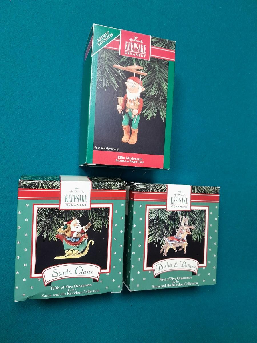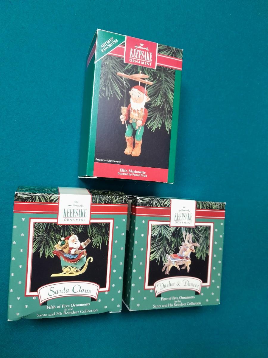 HALLMARK CHRISTMAS ORNAMENTS, SANTA, DEER AND ELF MARIONETTE