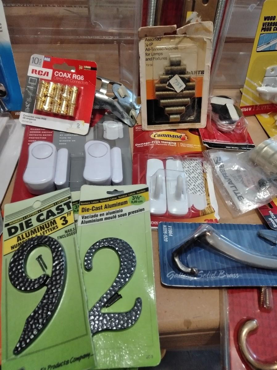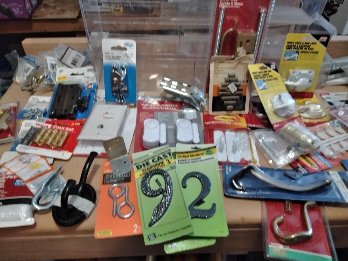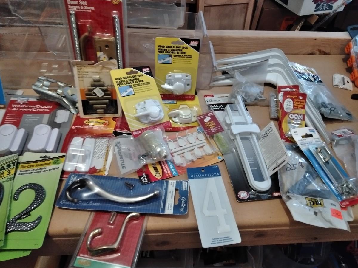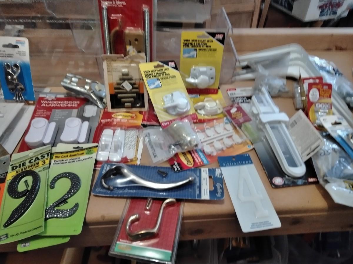 HOME REPAIR HARDWARE AND ACCESSORIES, HINGES, HOOKS, NUMBERS, WINDOW SASH LOCKS, WINDOW ALARMS AND MUCH MORE!