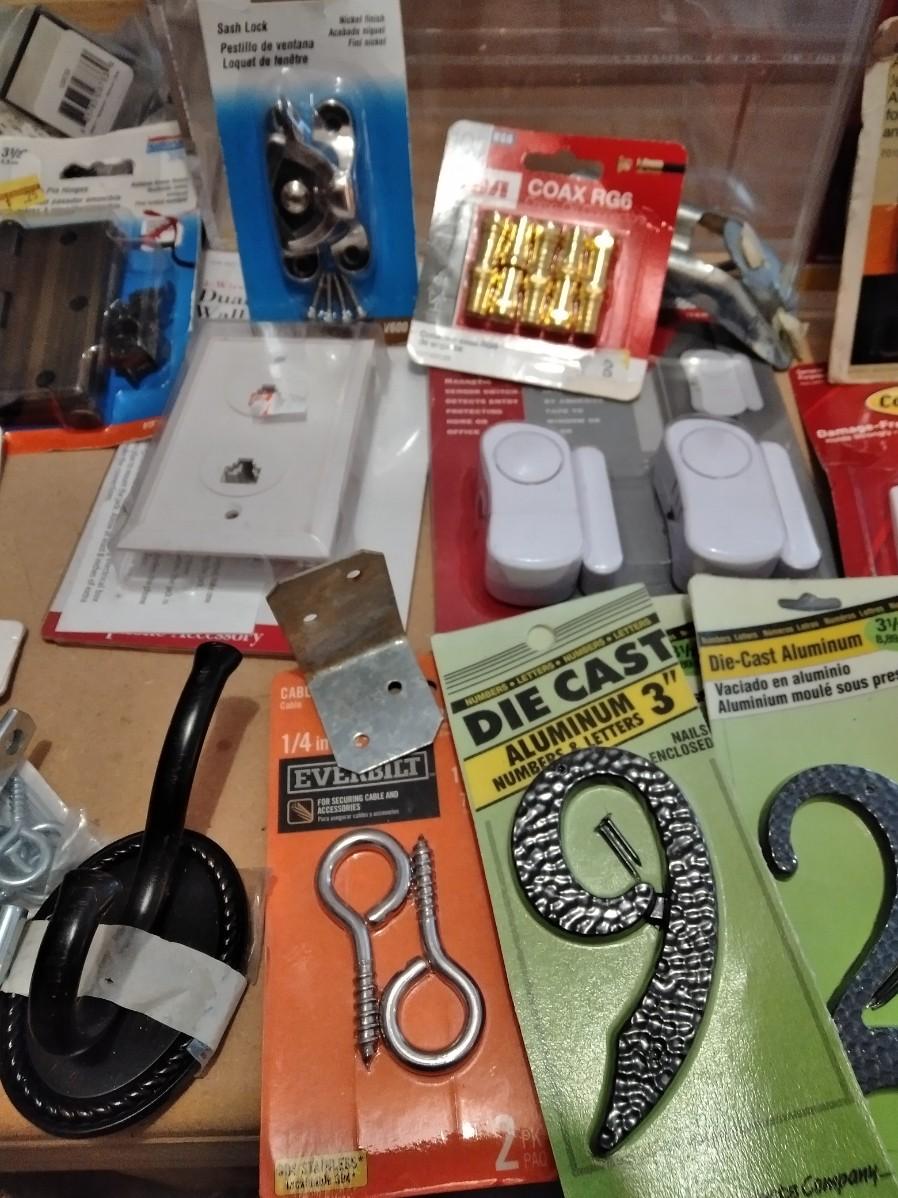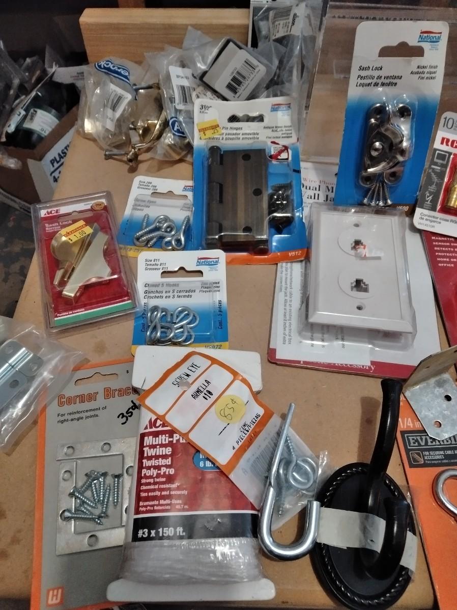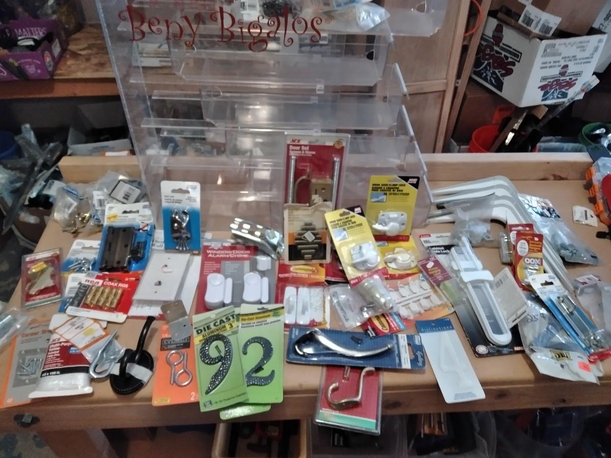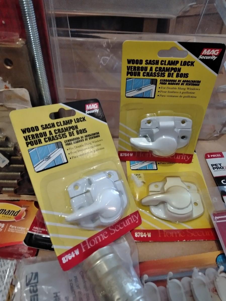 HOME REPAIR HARDWARE AND ACCESSORIES, HINGES, HOOKS, NUMBERS, WINDOW SASH LOCKS, WINDOW ALARMS AND MUCH MORE!