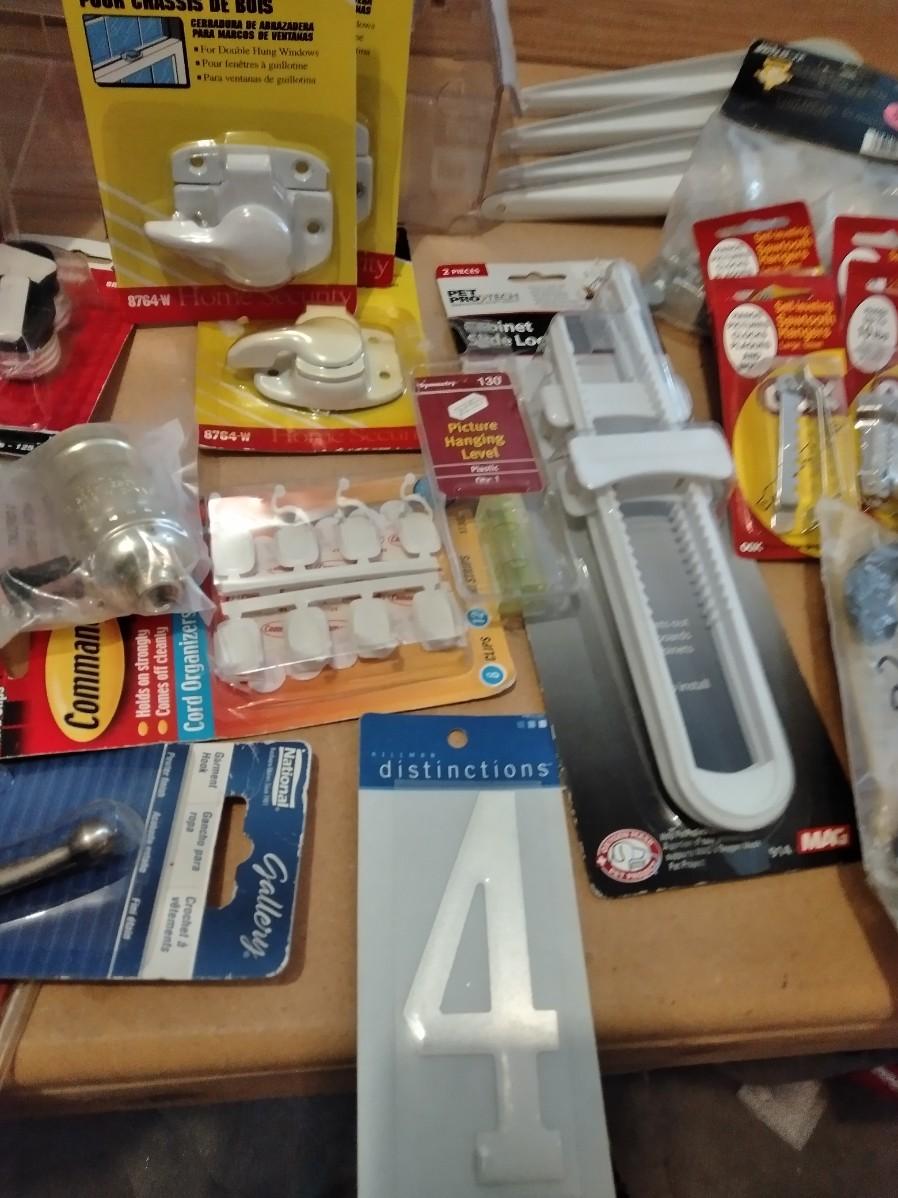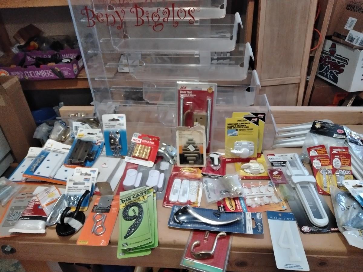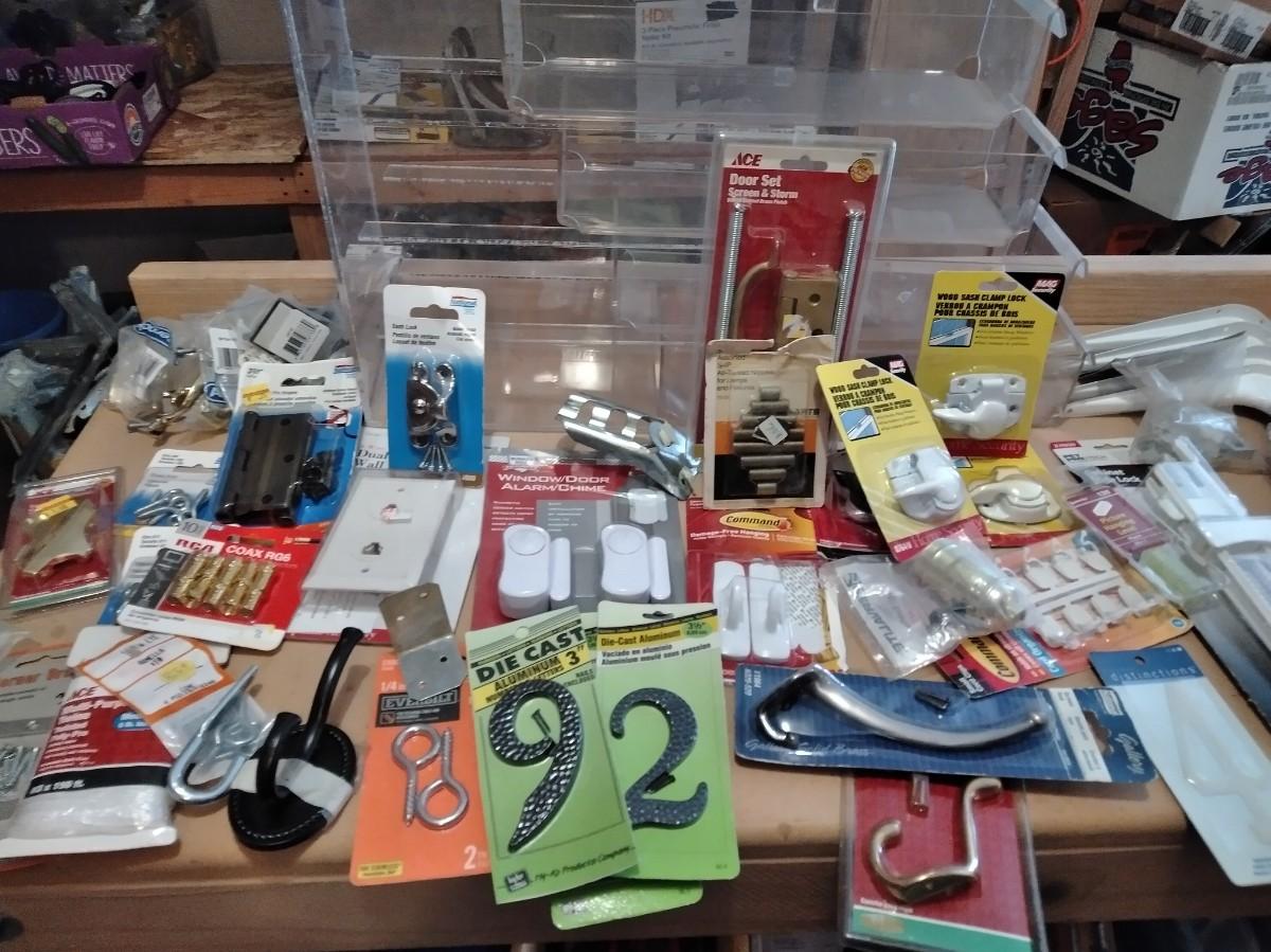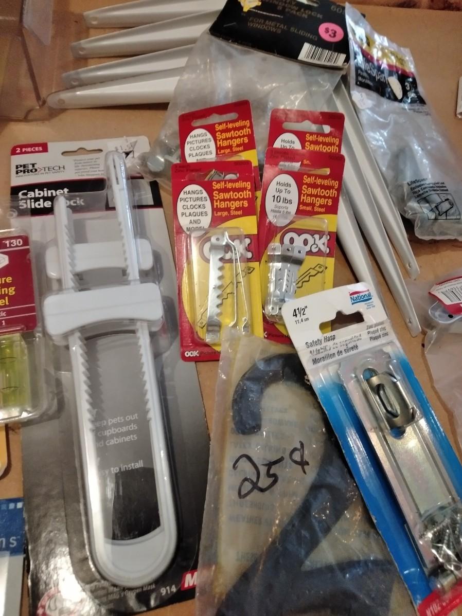 HOME REPAIR HARDWARE AND ACCESSORIES, HINGES, HOOKS, NUMBERS, WINDOW SASH LOCKS, WINDOW ALARMS AND MUCH MORE!